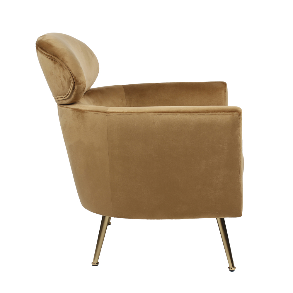 Η πολυθρόνα Testa σε λαμπερό χρυσό χρώμα και επένδυση βελούδου είναι η επιτομή της πολυτέλειας και της άνεσης. Σχεδιασμένη για να εντυπωσιάζει, η Testa συνδυάζει την αίσθηση του εκλεπτυσμένου στυλ με την λειτουργικότητα. Η ευρύχωρη και αναπαυτική της θέση, μαζί με τα στιβαρά μεταλλικά πόδια, εξασφαλίζουν μακροχρόνια αντοχή και υποστήριξη. Η μοναδική της αισθητική την καθιστά ιδανική για το σαλόνι, το γραφείο ή τον χώρο υποδοχής, προσφέροντας μια πολυτελή αίσθηση και άνεση.