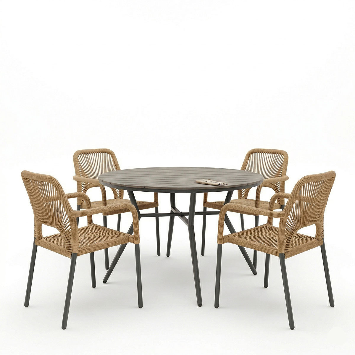Τραπεζαρία Appa-Norture σετ 5τεμ ανθρακί αλουμίνιο και rattan σε φυσική απόχρωση Φ120×74εκ
