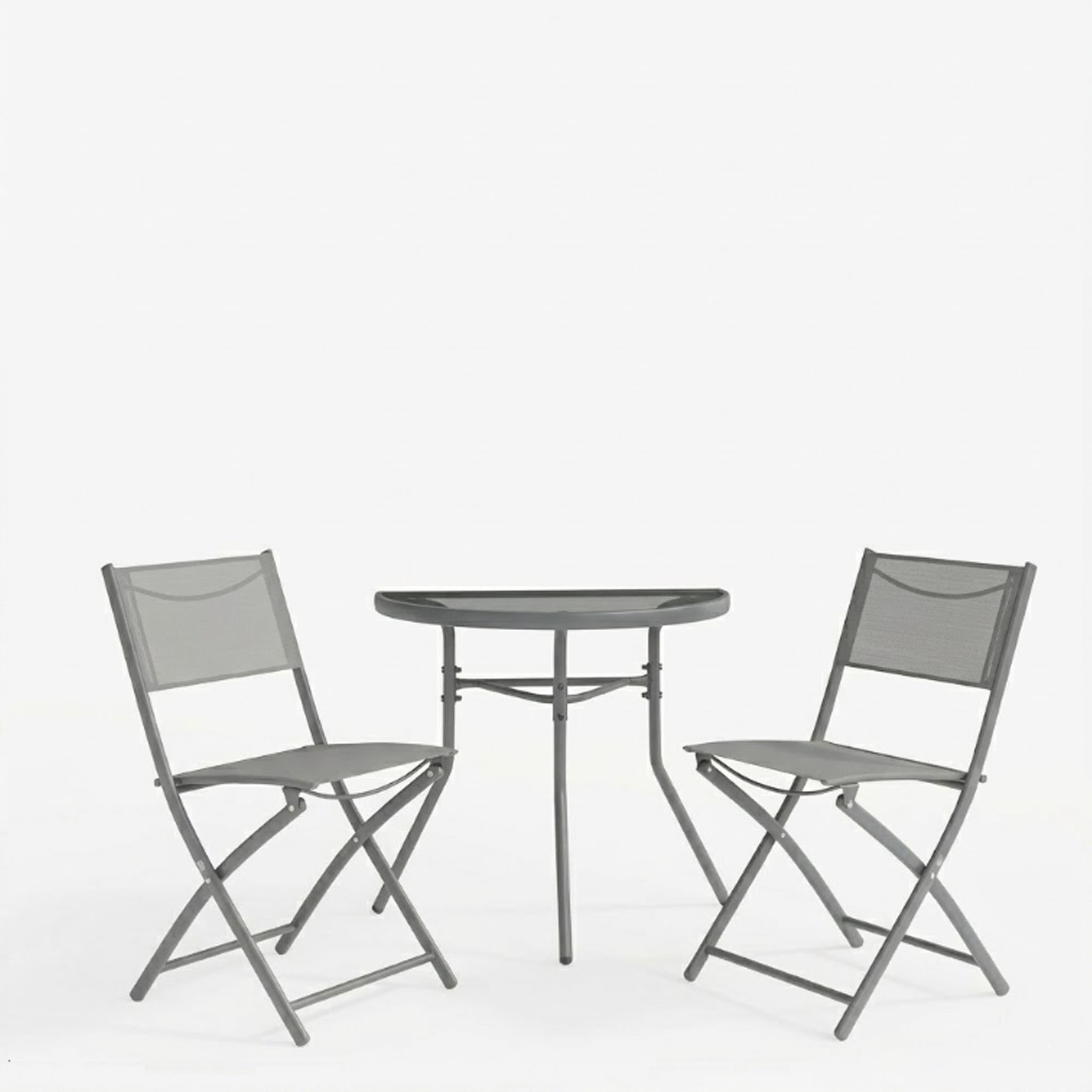 Τραπεζαρία Bion Jeve σετ 3τεμ ανθρακί μέταλλο με σαμπανιζέ textilene 70x40x65εκ