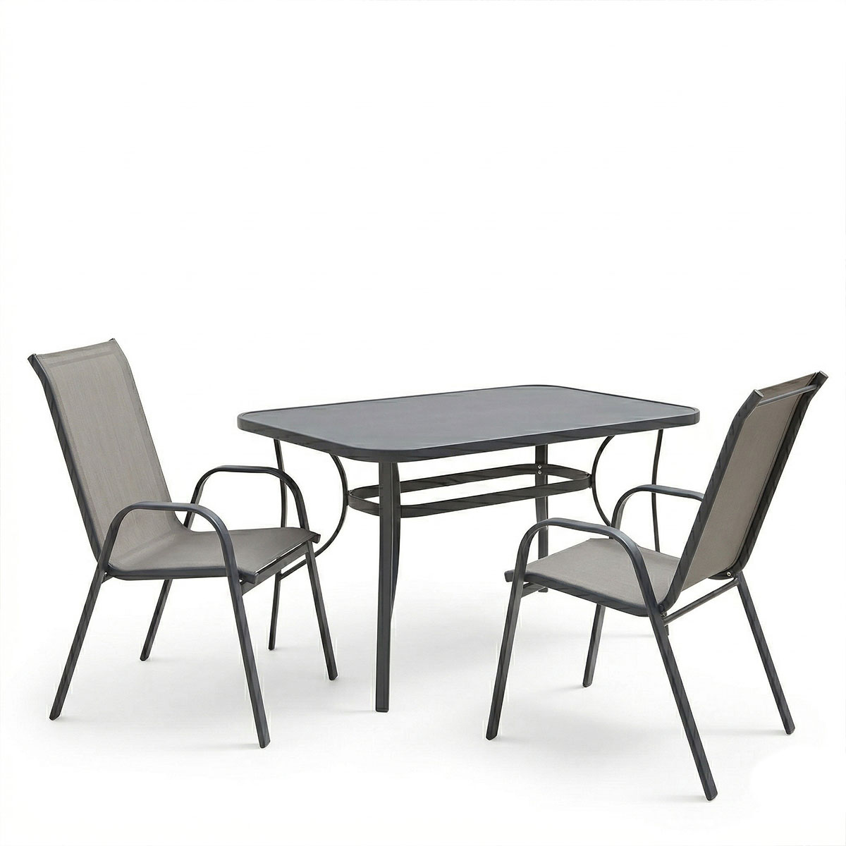 Τραπεζαρία Ensure Calan σετ 3τεμ ανθρακί μέταλλο με γυαλί 120x70x70εκ