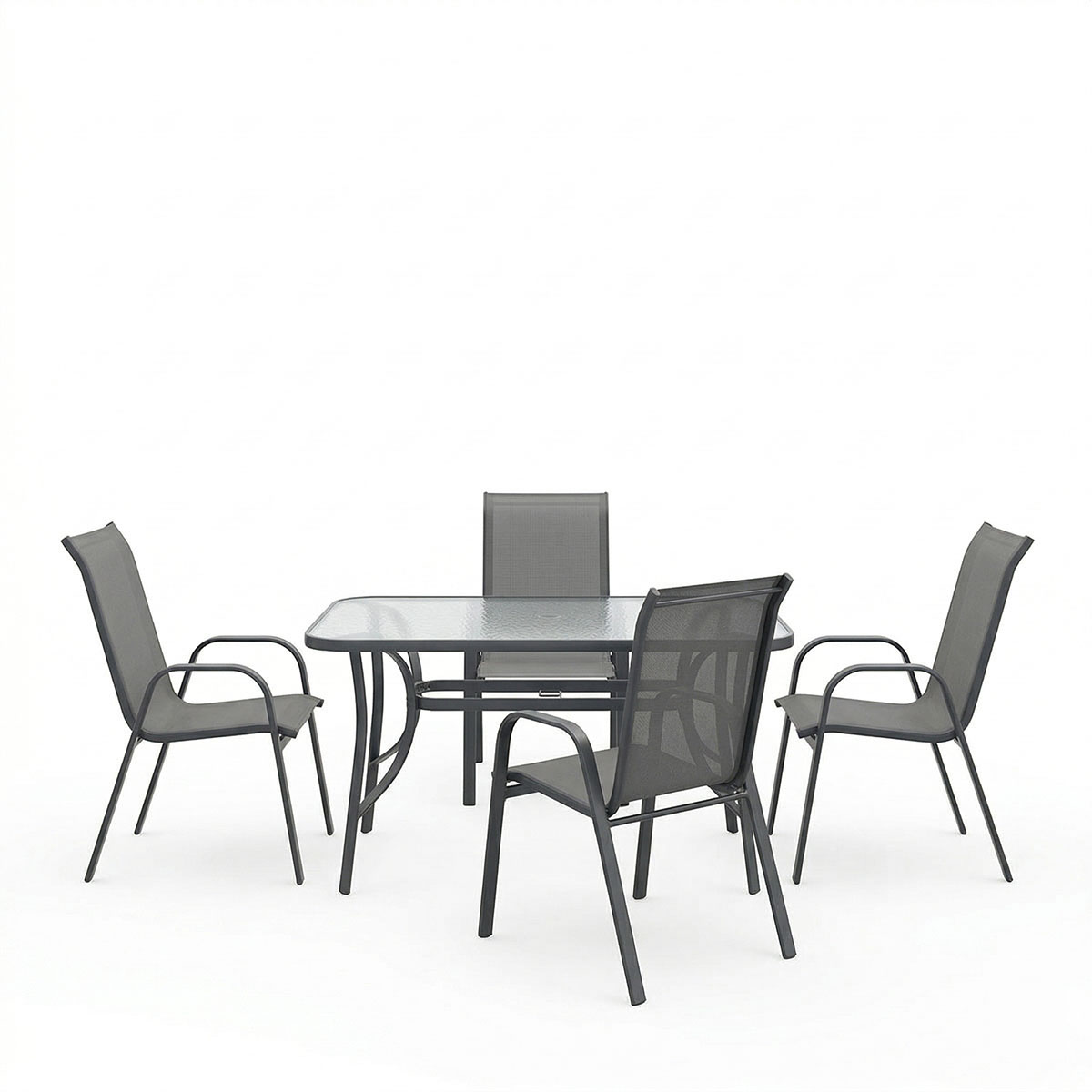 Τραπεζαρία Ensure Calan σετ 5τεμ ανθρακί μέταλλο με γυαλί 120x70x70εκ