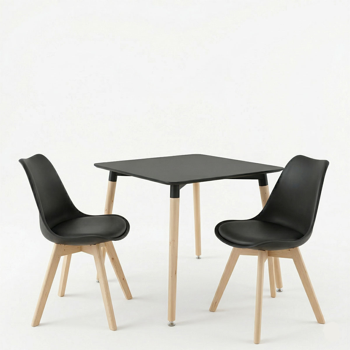 Τραπεζαρία με Καρέκλες Gaston και Τραπέζι Natali μαύρο 80x80x76εκ Σετ 3τεμ