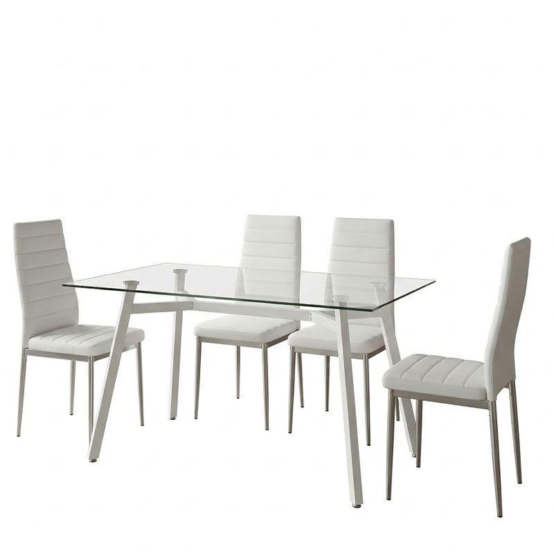 Τραπεζαρία με Καρέκλες Parker Λευκό και Τραπέζι Titta γυαλί 120x70x75εκ Σετ 5τεμ