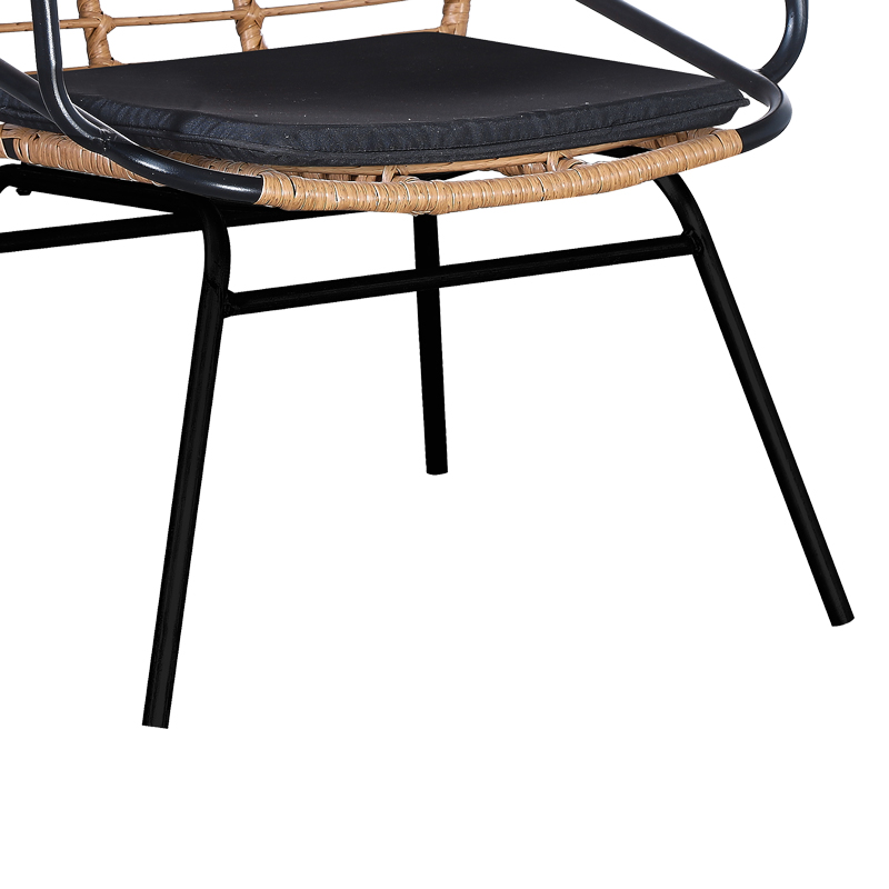 - Κυρίως επιφάνεια καρέκλας από PE rattan σε φυσικόχρώμα. Το PE rattan είναι ένα είδος οικολογικού συνθετικού rattan, ανακυκλώσιμο και με μεγαλύτερη ανθεκτικότητα σε σχέση με τα άλλα είδη.