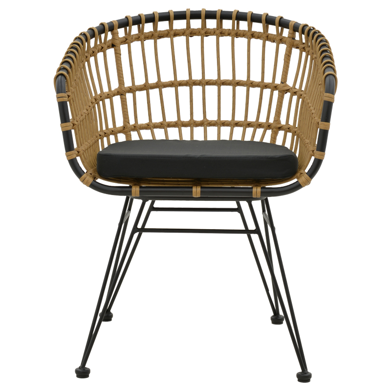 - Κυρίως επιφάνεια καρέκλας από PE rattan σε φυσικό χρώμα. Το PE rattan είναι ένα είδος οικολογικού συνθετικού rattan, ανακυκλώσιμο και με μεγαλύτερη ανθεκτικότητα σε σχέση με τα άλλα είδη.