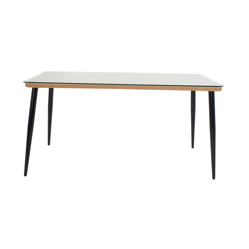 Τραπεζαρία Naoki C σετ 7 τμχ rattan φυσικό-μαύρο μέταλλο-γυαλί 160x90x78εκ