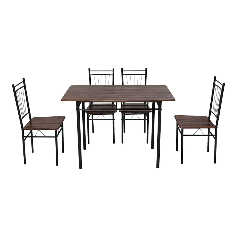 Τραπεζαρία Roza σετ 5τμχ mdf καρυδί με μεταλλικό μαύρο πόδι 110x60x75εκ