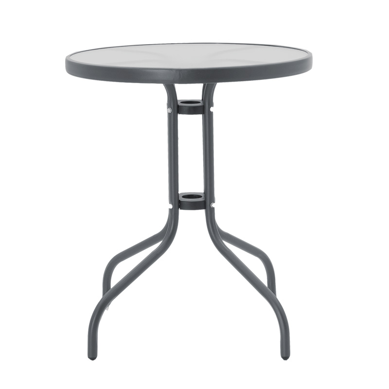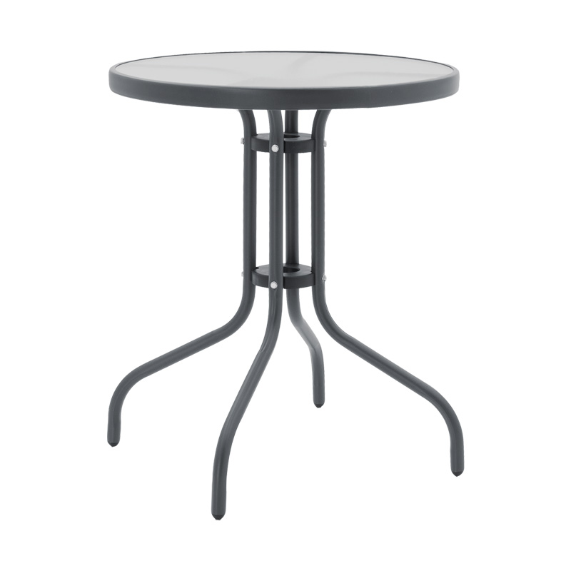 Tραπεζαρία Watson-Lindaria σετ 3τεμ μέταλλο ανθρακί-γυαλί- pe rattan σε φυσική απόχρωση Φ60×70εκ