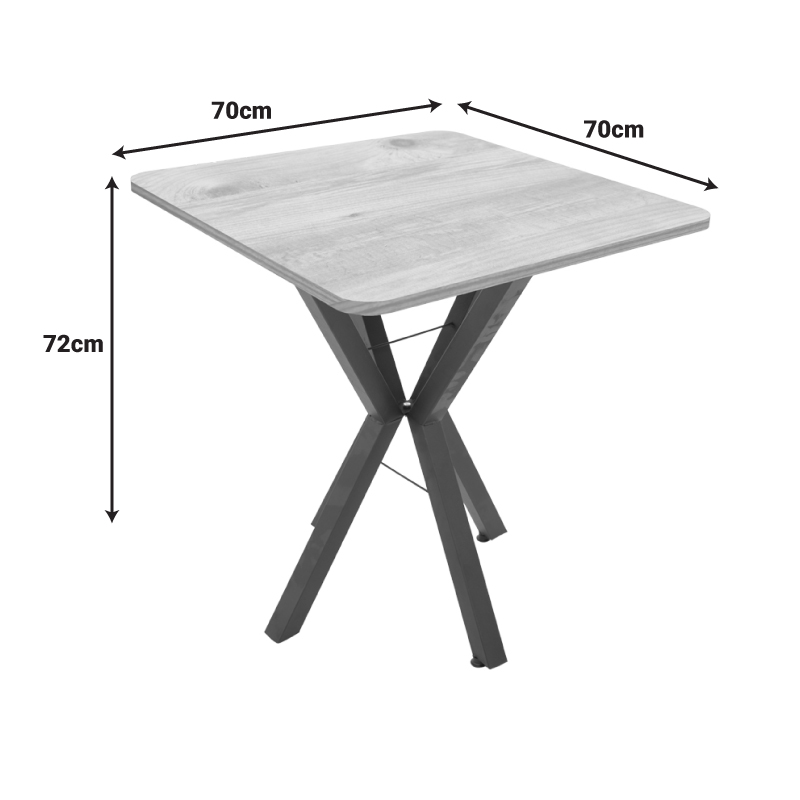 Ιδανικό για μικρούς χώρους, το μοντέρνο τετράγωνο τραπέζι Arenya συνδυάζει την ανθεκτικότητα και το στυλ. Η επιφάνεια σε όψη ρουστίκ ξύλου και η κομψή μεταλλική βάση προσφέρουν μια λειτουργική και ταυτόχρονα εντυπωσιακή λύση για την κουζίνα ή και τον επαγγελματικό σας χώρο
