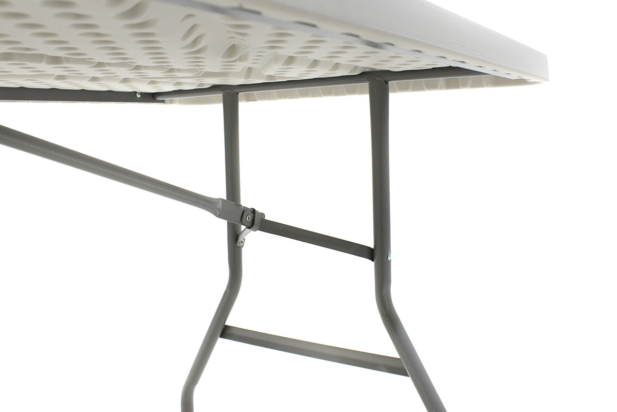 *Στήριξη σε ενισχυμένο μεταλλικό σκελετό Φ28 – 1mm ηλεκτροστατικής βαφής που καταλήγει σε  ένα πτυσσόμενο σύστημα ποδιών, σε γκρι  χρώμα.  Έχει μεγάλη αντοχή σε χτυπήματα και εξαιρετική σταθερότητα. Όταν δεν χρησιμοποιείται τα πόδια «μαζεύουν» κάτω από την επιφάνεια, εξοικονομώντας χώρο για την εύκολη αποθήκευση και μεταφορά του.