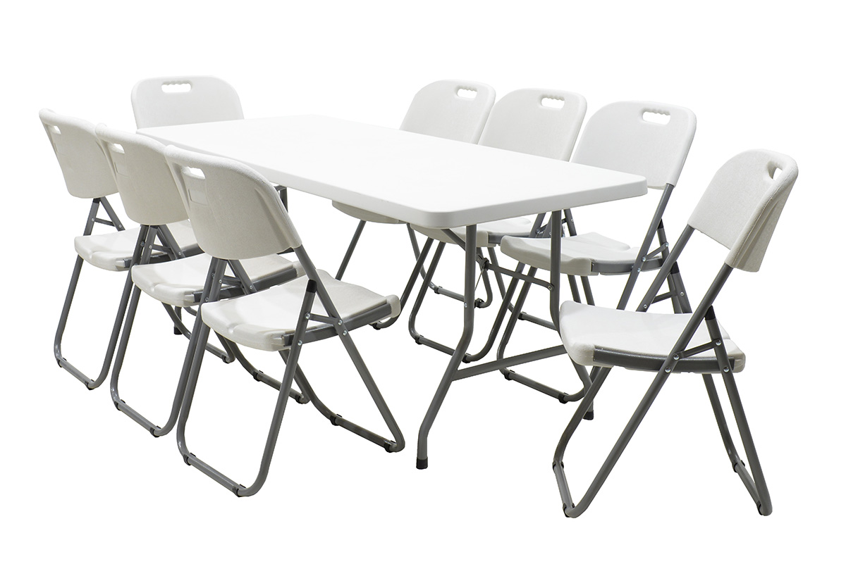 Τραπέζι πτυσσόμενο Aprilia (catering – συνεδρίου) ορθογώνιο με μεταλλική βάση χρώμα λευκού-γρανίτι / γκρι 183x76x74εκ
