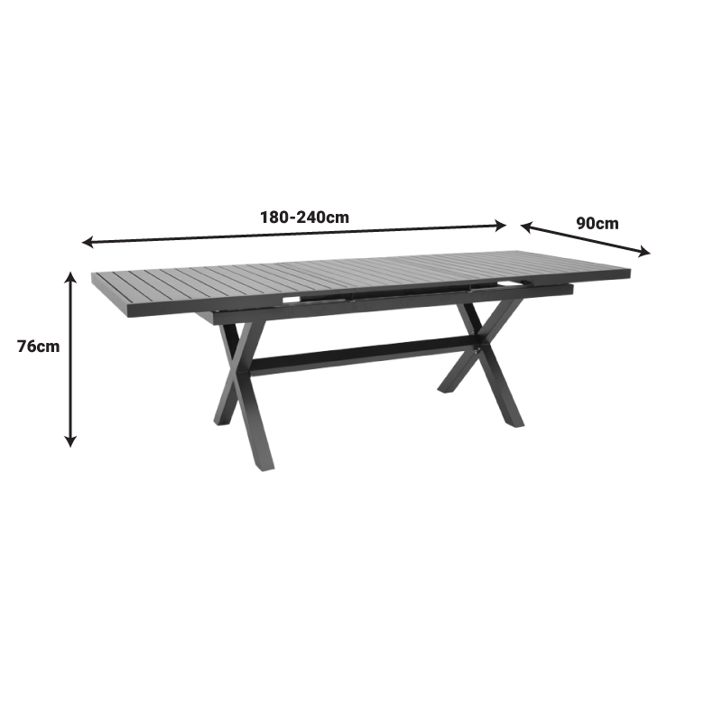 Τραπέζι επεκτεινόμενο Dagyn ανθρακί αλουμίνιο 180-240x90x76εκ