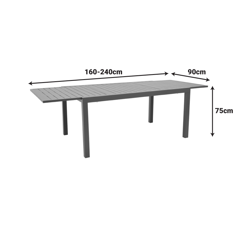 Τραπέζι επεκτεινόμενο Lafla αλουμινίου ανθρακί 160-240x90x75εκ