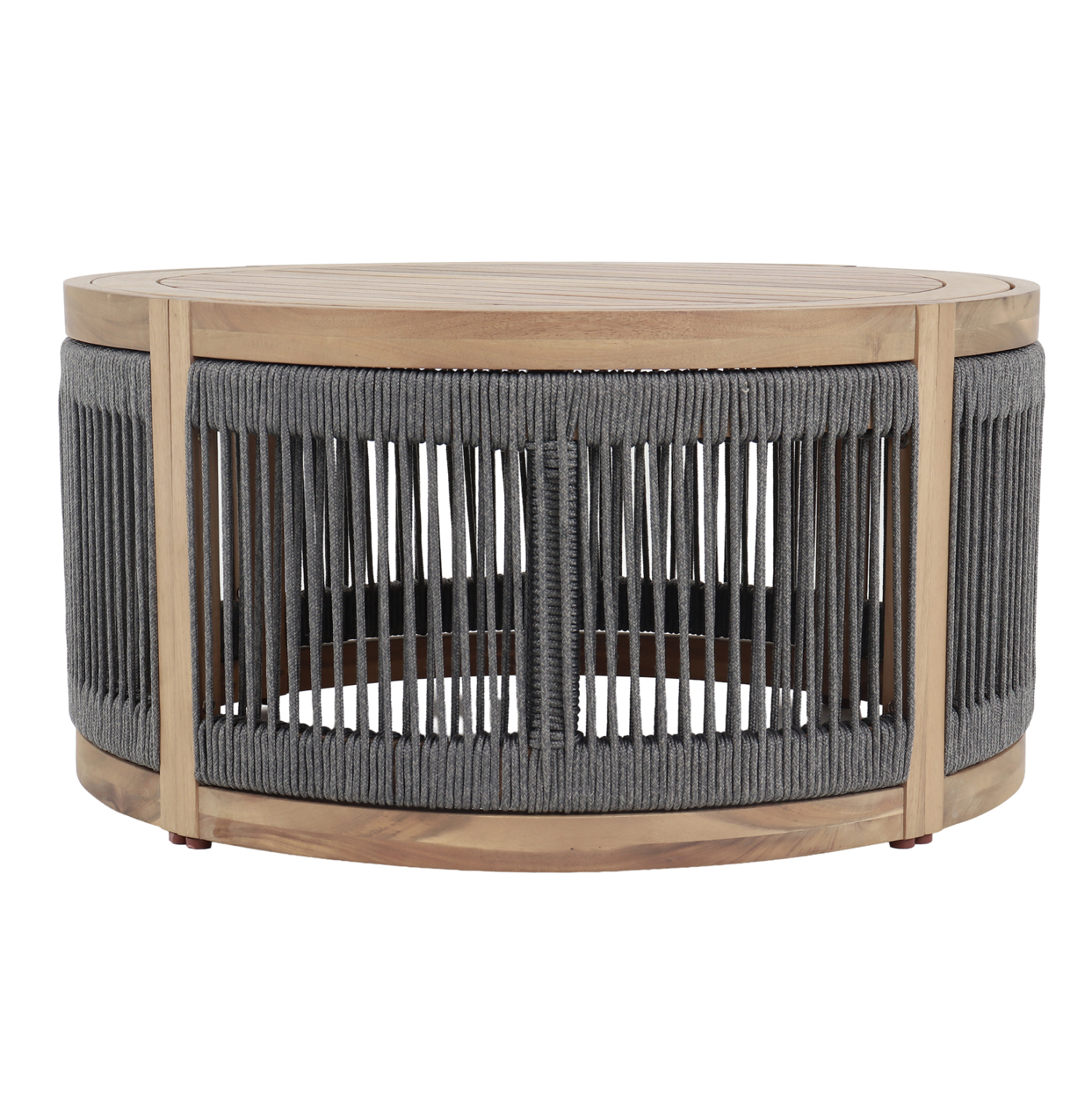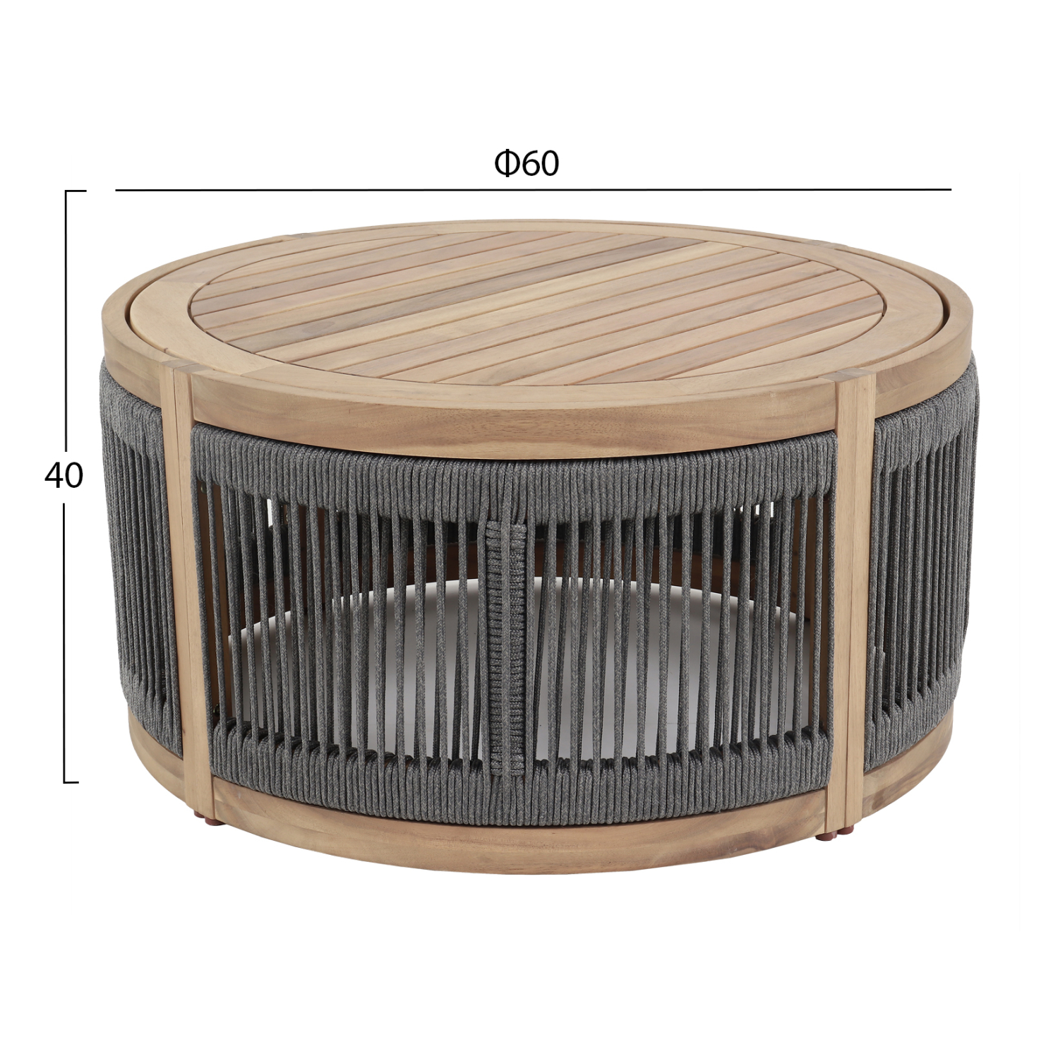 Τραπέζι Μέσης Εξωτερικού Χώρου MORMONT στρογγυλό | Ξύλο Ακακίας & Σχοινί γκρι