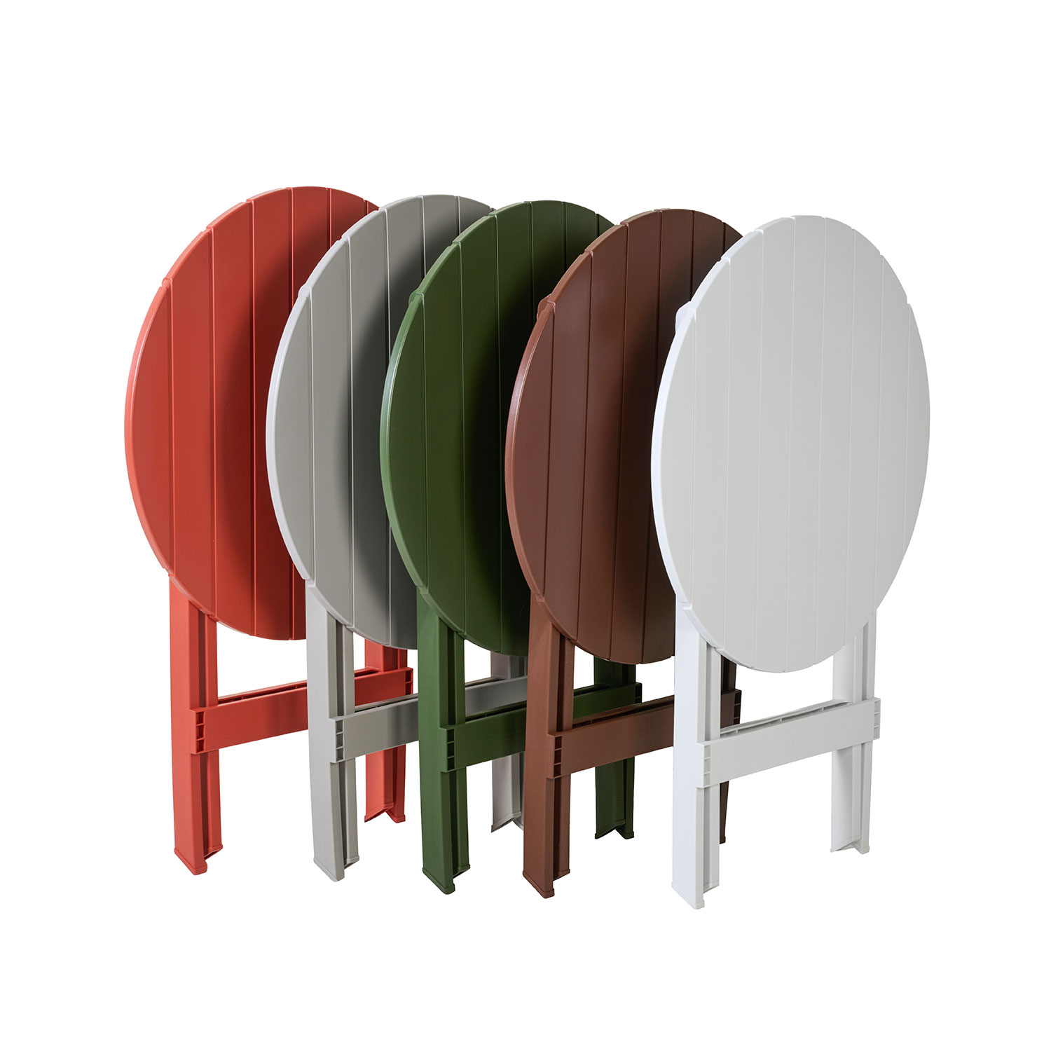Αυτό το ευέλικτο και κομψό στρογγυλό τραπέζι είναι η ιδανική προσθήκη για τον κήπο, τη βεράντα, το μπαλκόνι, ή ακόμα και για το κάμπινγκ. Κατασκευασμένο από ανθεκτικό πολυπροπυλένιο, εξασφαλίζει μεγάλη διάρκεια ζωής και αντοχή στις καιρικές συνθήκες και την υπεριώδη ακτινοβολία. Διπλώνει εύκολα για εξοικονόμηση χώρου και άνετη αποθήκευση ή μεταφορά. Διατίθεται σε μια σειρά από μοντέρνα χρώματα για να ταιριάζει σε κάθε στυλ διακόσμησης.