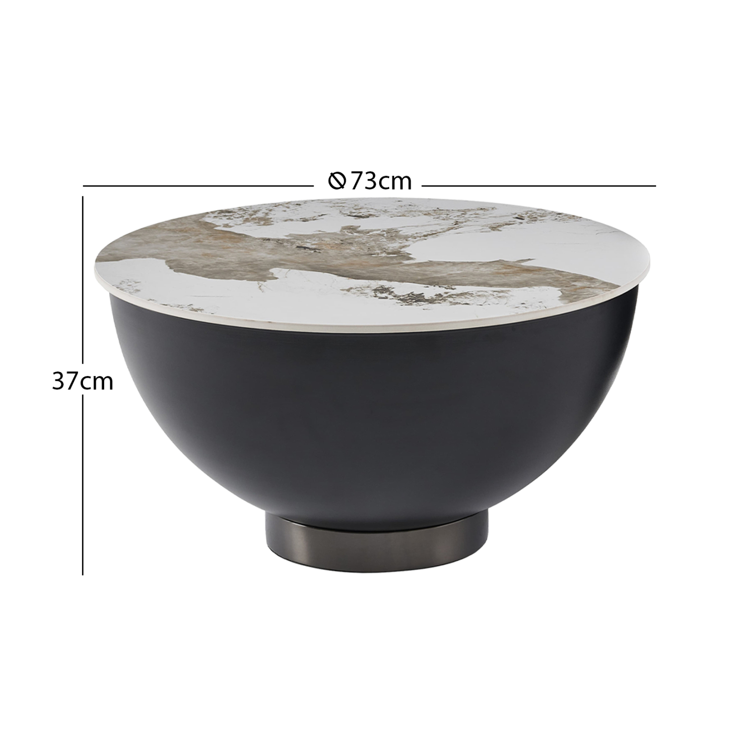 ΤΡΑΠΕΖΙ ΣΑΛΟΝΙΟΥ ERIDANO SM18309.02 ΜΕΤΑΛΛΟ ΜΑΥΡΟ-SINTERED STONE PANDORA Φ73×37Υεκ