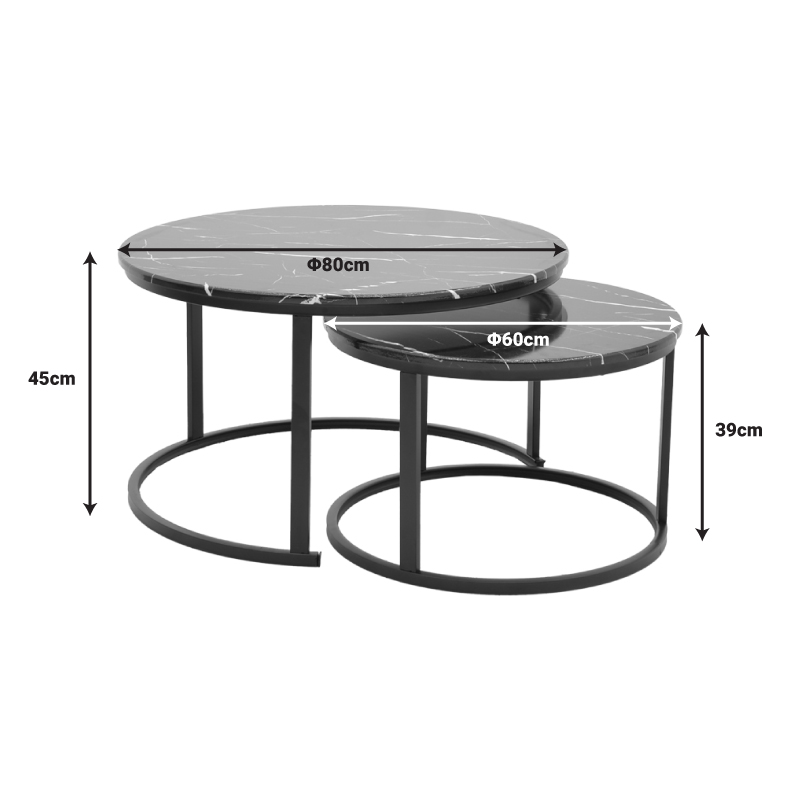 Τραπέζι σαλονιού Revelon σετ 2τεμ mdf σε απόχρωση μαύρο όψης μαρμάρου 80x80x45εκ