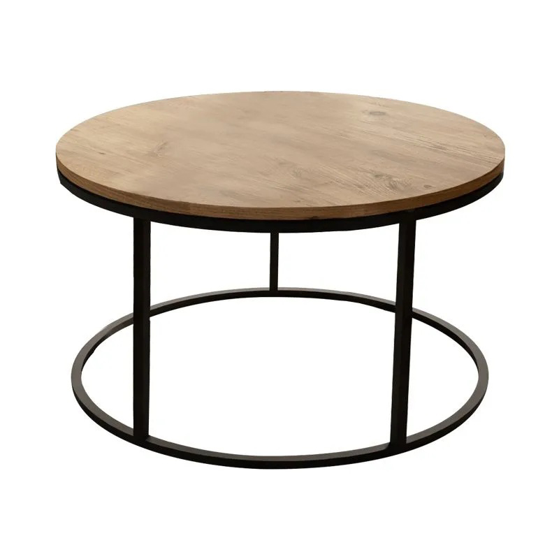 Τραπέζι σαλονιού Sikele φυσική απόχρωση με μαύρα μεταλλικά πόδια Φ60×40εκ