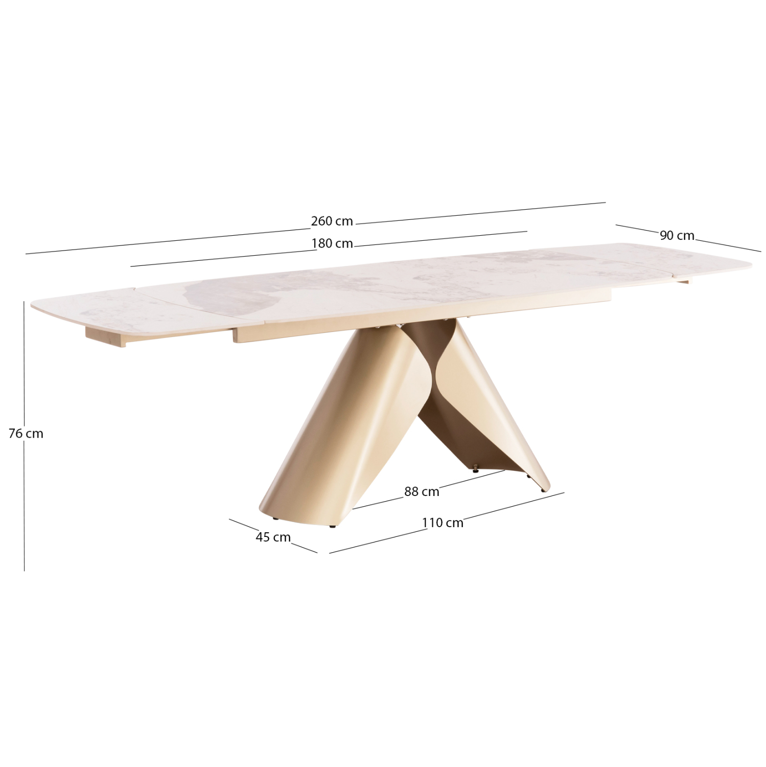 180(+40+40)x90x76Υ εκ. (επεκτεινόμενο και από τις δύο πλευρές)