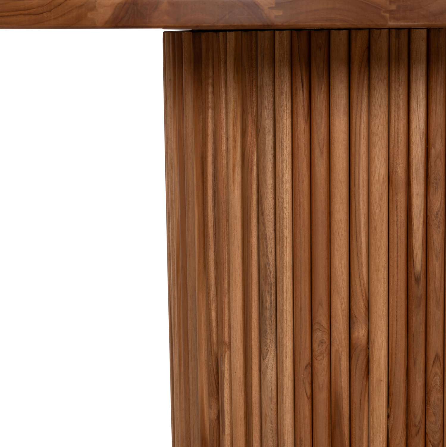Το τραπέζι είναι από εξαιρετικής ποιότητας ξύλο ΤΕΑΚ. Το ξύλο ΤΕΑΚ είναι ο πιο δημοφιλής τύπος σκληρού ξύλου. Είναι εξαιρετικά βαρύ, υψηλής αντοχής, ανθεκτικό στις καιρικές συνθήκες, ανθεκτικό στο σκέβρωμα και δεν αποσυντίθεται. Χρησιμοποιείται για πληθώρα κατασκευών εσωτερικού και εξωτερικού χώρου.