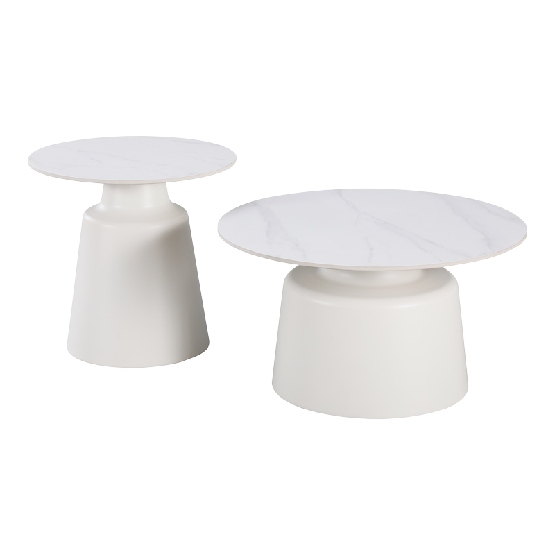 Τραπέζια σαλονιού Dualis σετ 2 τεμ μέταλλο-sintered stone σε λευκό μαμρμάρου