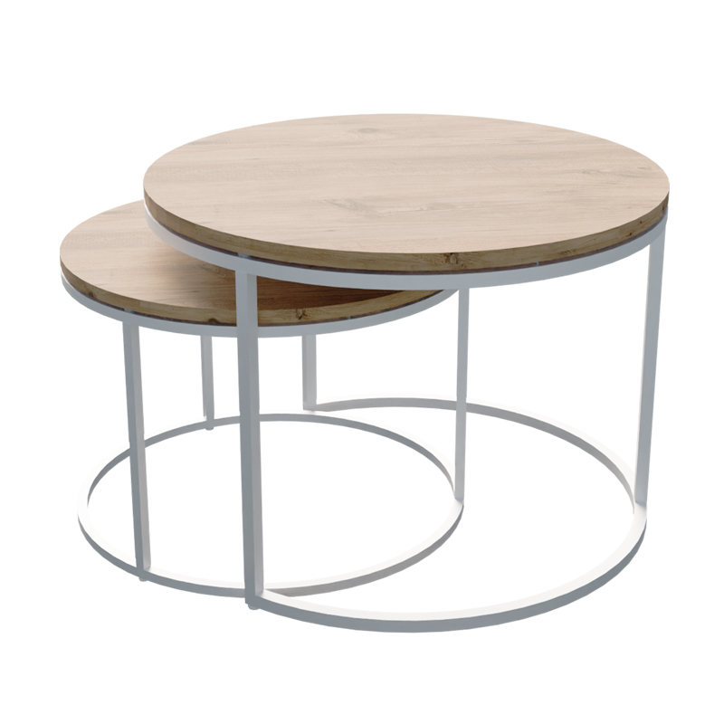 Τραπέζια σαλονιού Solme σετ 2τεμ λευκό μέταλλο και μελαμίνη σε φυσική απόχρωση