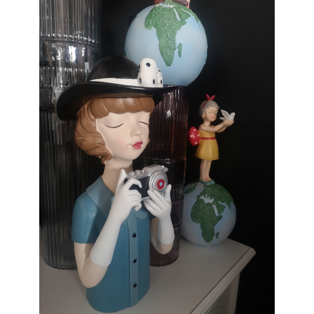 Η TRAVEL GIRL 6 διακοσμητική φιγούρα αποτυπώνει τη χαρά του ταξιδιού με έναν παιχνιδιάρικο και νοσταλγικό χαρακτήρα. Οι προσεγμένες λεπτομέρειες, τα απαλά χρώματα και η έκφραση της φιγούρας δημιουργούν ένα ζεστό, ευχάριστο αποτέλεσμα που δίνει προσωπικότητα στον χώρο. Με διαστάσεις 15x14x34cm, ξεχωρίζει σε κονσόλες, ράφια ή βιβλιοθήκες, λειτουργώντας ως διακοσμητικό στοιχείο που αφηγείται μια μικρή ιστορία. Κατασκευασμένη από polyresin, μπορεί να σταθεί μόνη της ή να συνδυαστεί με άλλες φιγούρες της ίδιας θεματικής.