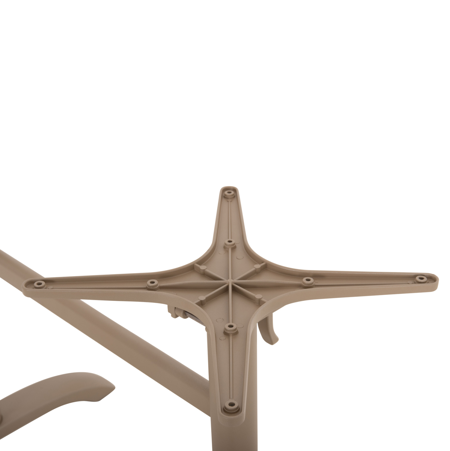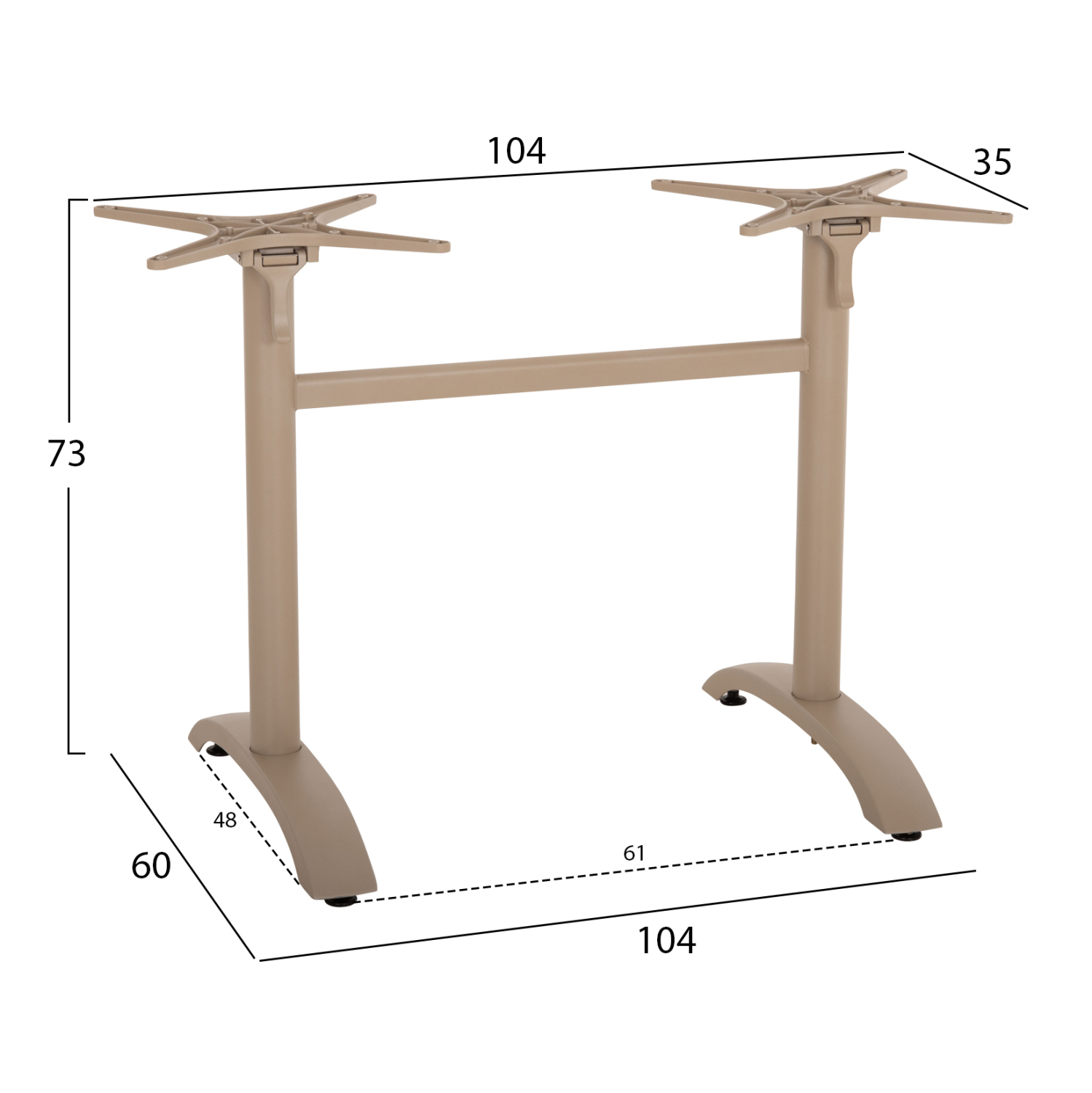 Η ΗΜ468.25 είναι βάση/πόδια για τραπέζι σε ΚΑΠΟΥΤΣΙΝΟ ΜΑΤ χρώμα. Αυτή η βάση είναι ΑΛΟΥΜΙΝΙΟΥ με δύο κολώνες (πόδια) που στηρίζονται σε αντίστοιχες αψίδες. Η επιφάνεια που θα επιλέξετε στηρίζεται σε δύο «σταυρούς», οι οποίοι μάλιστα είναι αναδιπλούμενοι για ευκολία κατά την αποθήκευση! Επίσης, στο κάτω μέρος των ποδιών/αψίδων διαθέτει ρυθμιστές ύψους (ρεγουλατόρους). Ιδανική πρόταση για συνδυασμό με επιφάνειες σχεδόν κάθε είδους, όπως βερσαλίτες, HPL, MDF, κτλ.