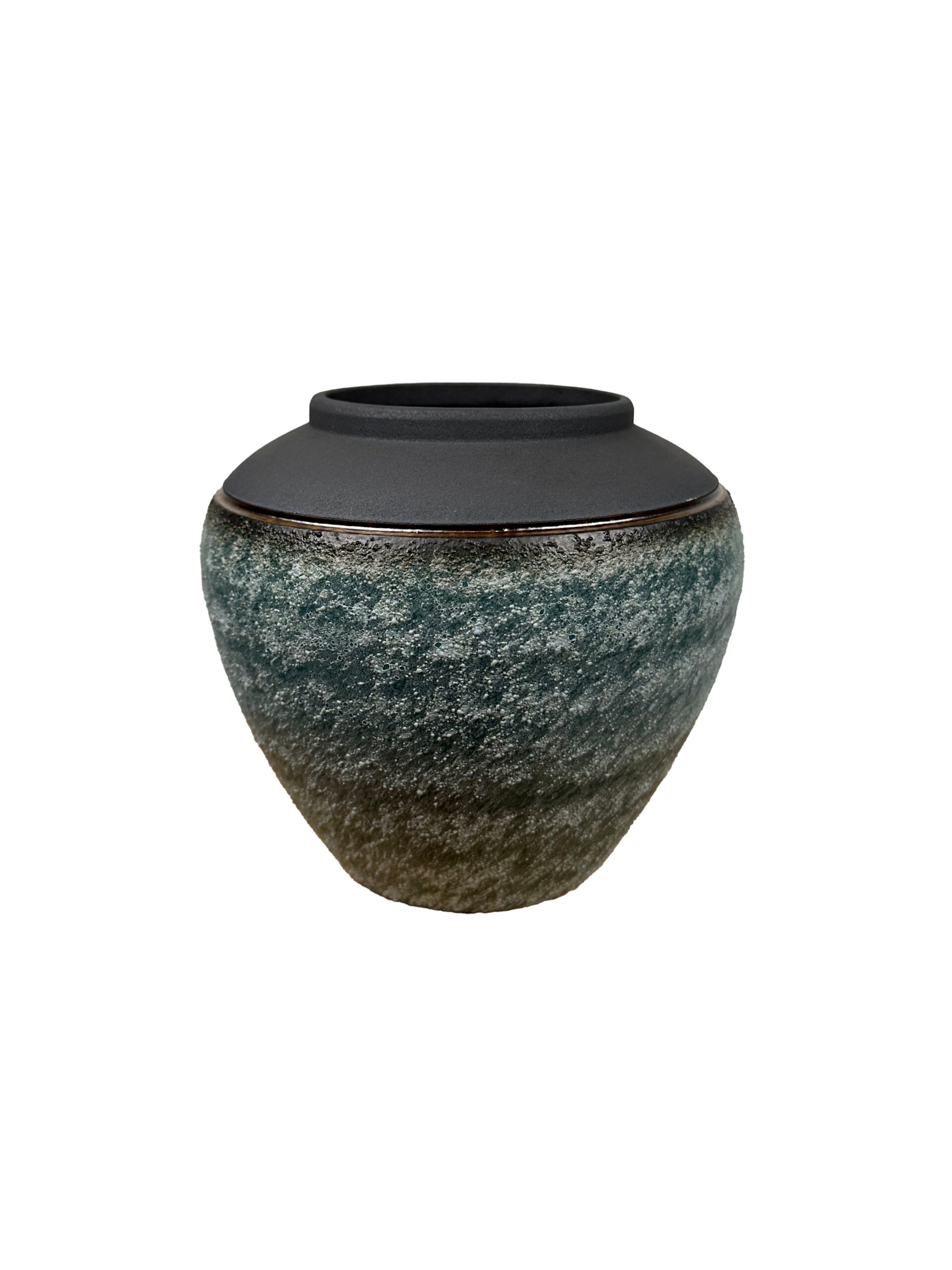 Βάζο Κεραμικό Γκρι-Μαύρο-Χρυσό Φ 19X18