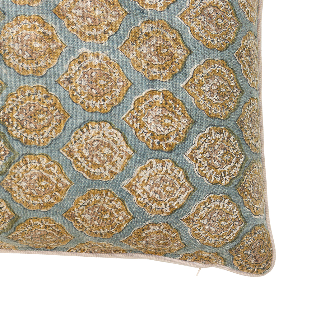 Το διακοσμητικό μαξιλάρι VENETIAN φέρνει στο χώρο μια ατμόσφαιρα πολυτέλειας με μια παιχνιδιάρικη, φωτεινή διάθεση. Η χρωματική αντίθεση aqua–χρυσό δημιουργεί ένα statement κομμάτι που τραβάει το βλέμμα χωρίς υπερβολή. Το ύφασμα βαμβάκι/βισκόζη χαρίζει απαλότητα και φινέτσα, ενώ το λεπτομερές pattern προσθέτει μια artistic πινελιά που αναβαθμίζει κάθε καναπέ, πολυθρόνα ή κρεβατοκάμαρα.