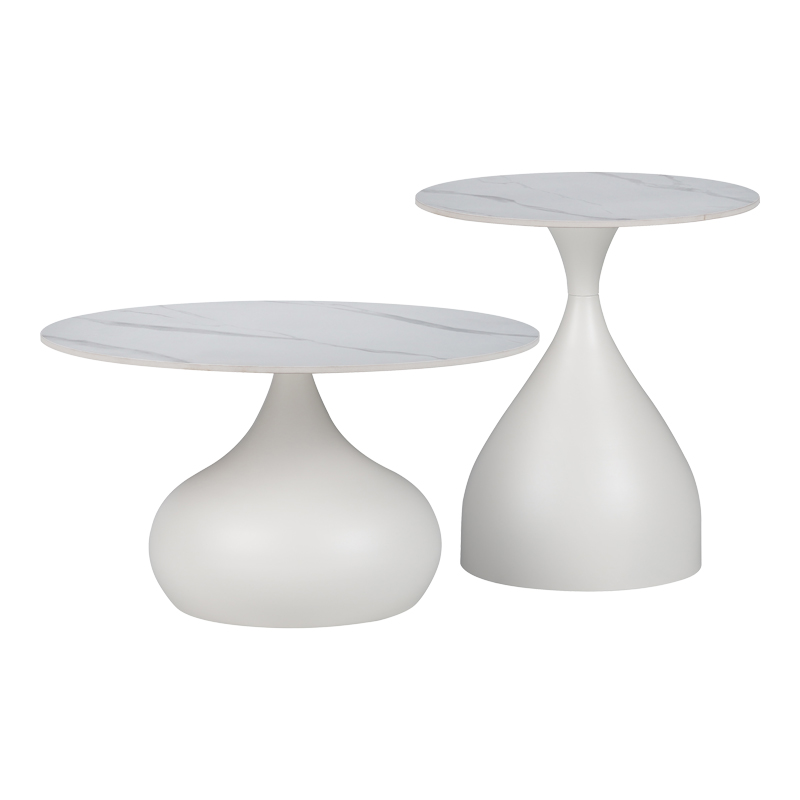 Βοηθητικά τραπέζια Kirkene Inart sintered stone σε απόχρωση λευκό μαρμάρου με λευκό μέταλλο 2τεμ