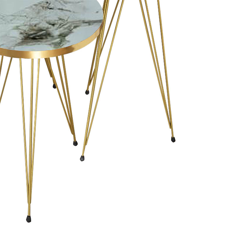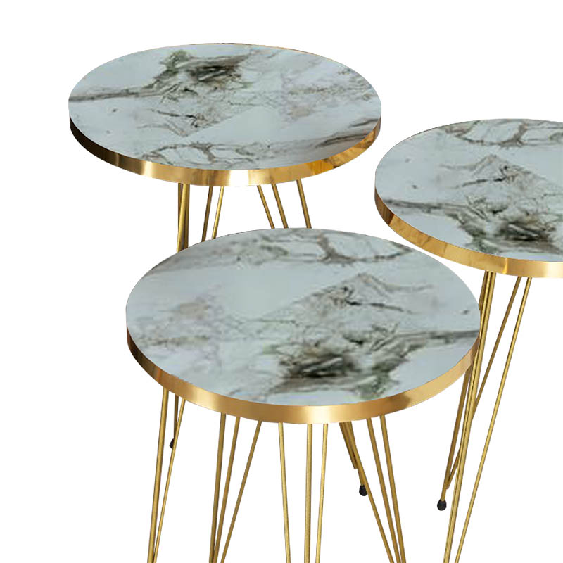 Βοηθητικά τραπέζια Wakmi σετ 3τεμ λευκό μπεζ μαρμάρου μελαμίνης-χρυσό μέταλλο