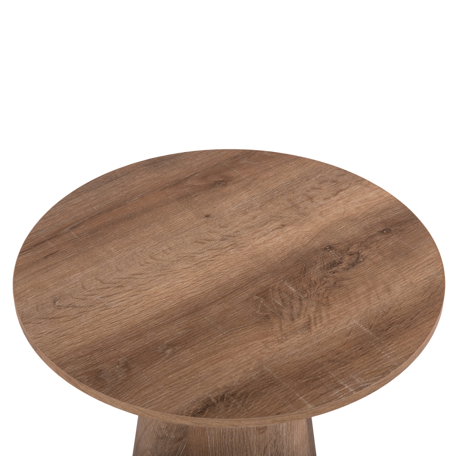 Το βοηθητικό τραπέζι σαλονιού KARAN είναι στρογγυλό και ψηλό σχετικά τραπέζι με κωνική βάση. Η επιφάνεια είναι επίπεδη και φαλτσοκομμένη προσδίδοντας μια όμορφη εικόνα στο τραπέζι. Ολόκληρο το τραπέζι είναι από MDF σε ΦΥΣΙΚΟ χρώμα ξύλου. Ιδανική επιλογή για το σπίτι αλλά και για επαγγελματικούς χώρους που μπορεί να χρειαστούν ένα τέτοιο έπιπλο.