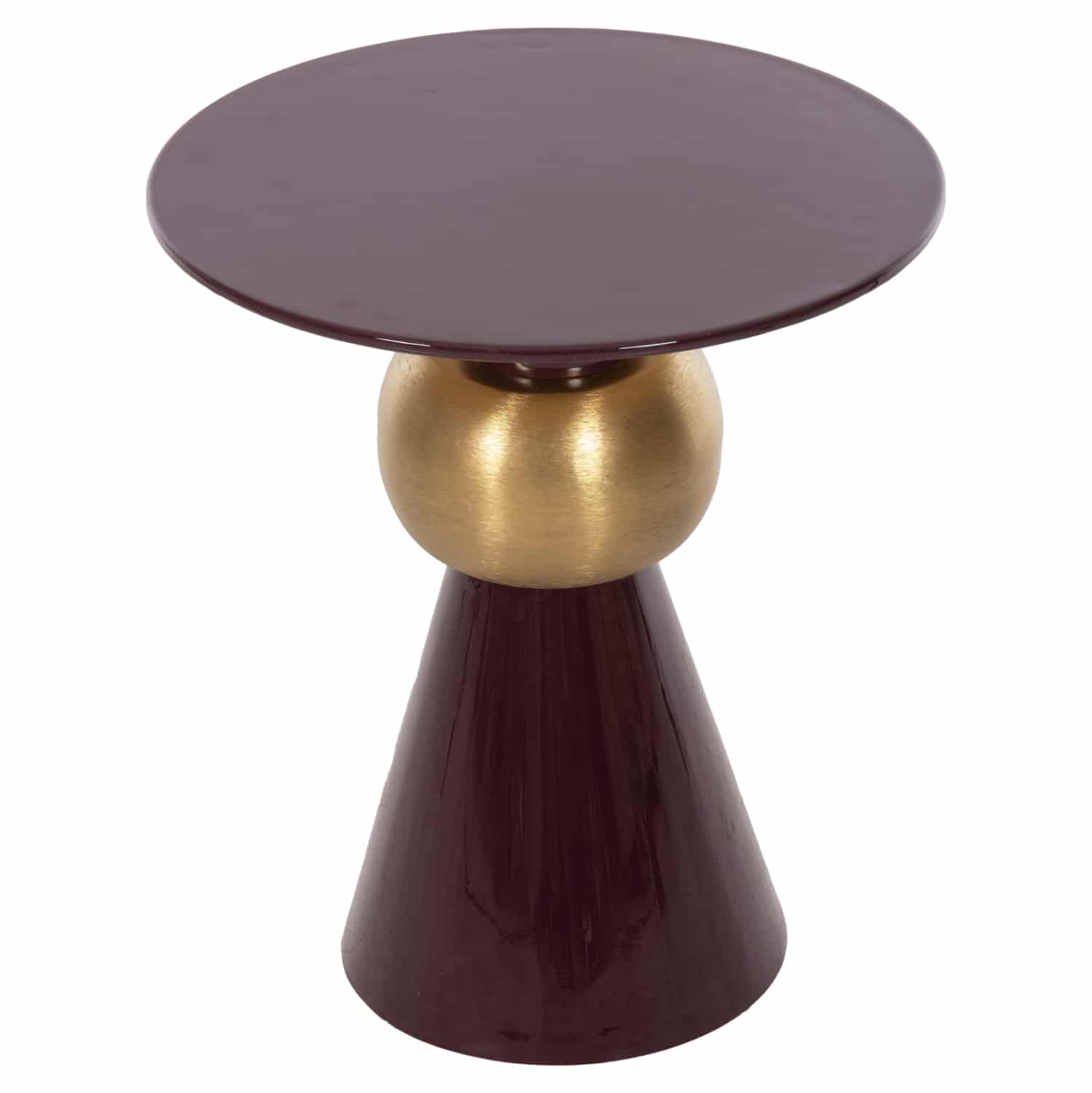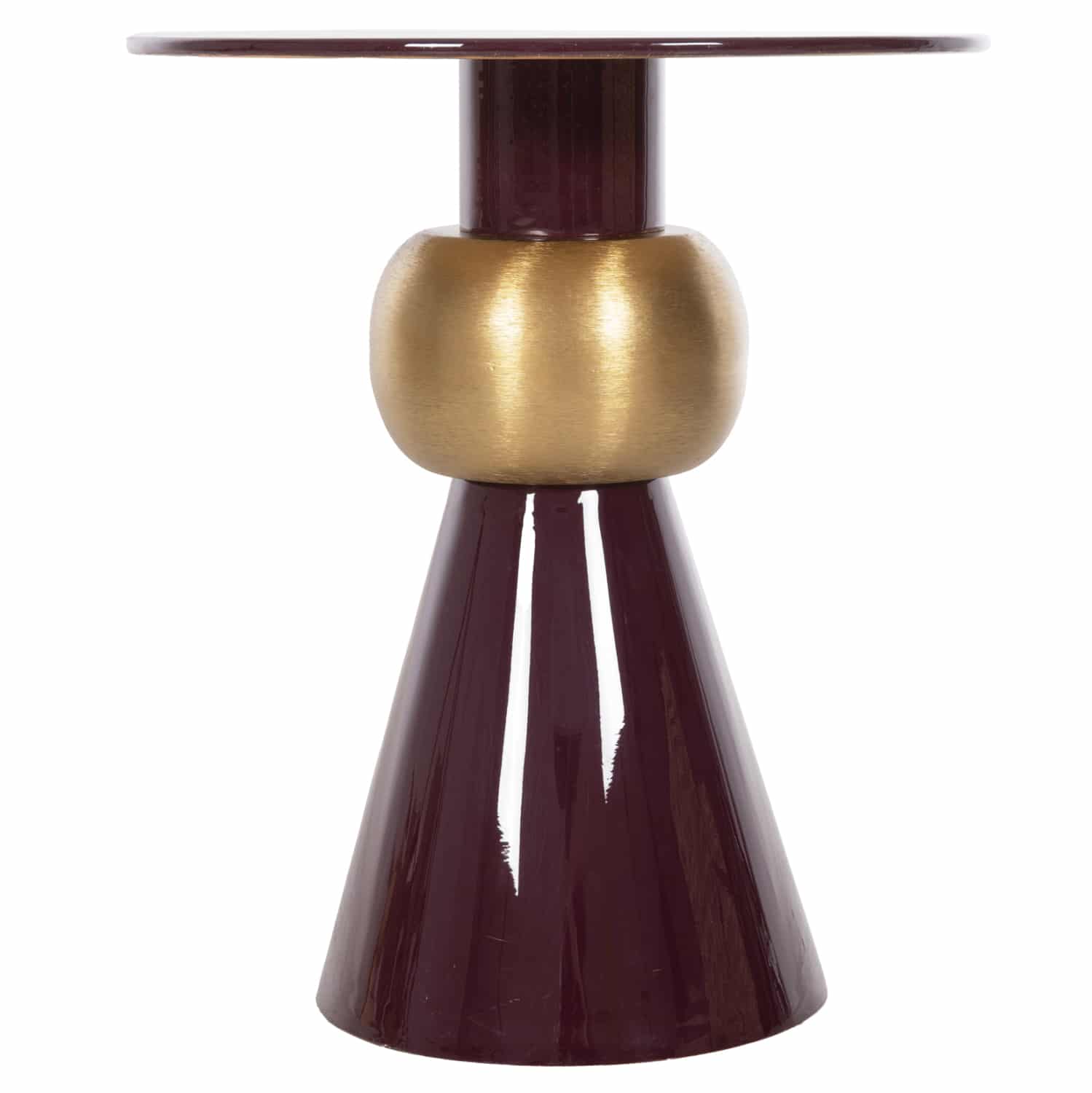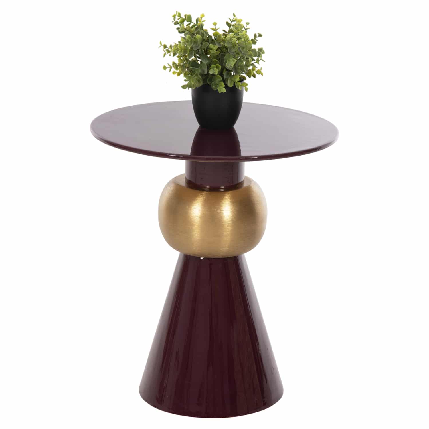 Το βοηθητικό τραπεζάκι PATNA για το σαλόνι είναι μια από τις νέες προσθήκες στην γκάμα μας. Πρόκειται για ένα μεταλλικό τραπεζάκι στρογγυλό με κωνική βάση και λαιμό που την συνδέει με την στρογγυλή επιφάνεια. Στον λαιμό υπάρχει «δαχτυλίδι» σε ΧΡΥΣΟ χρώμα που δίνει μια όμορφη διχρωμία αφού όλο το υπόλοιπο είναι σε χρώμα ΜΠΟΡΝΤΟ. Ιδανικό τόσο για το σπίτι, όσο και για επαγγελματικούς χώρους.