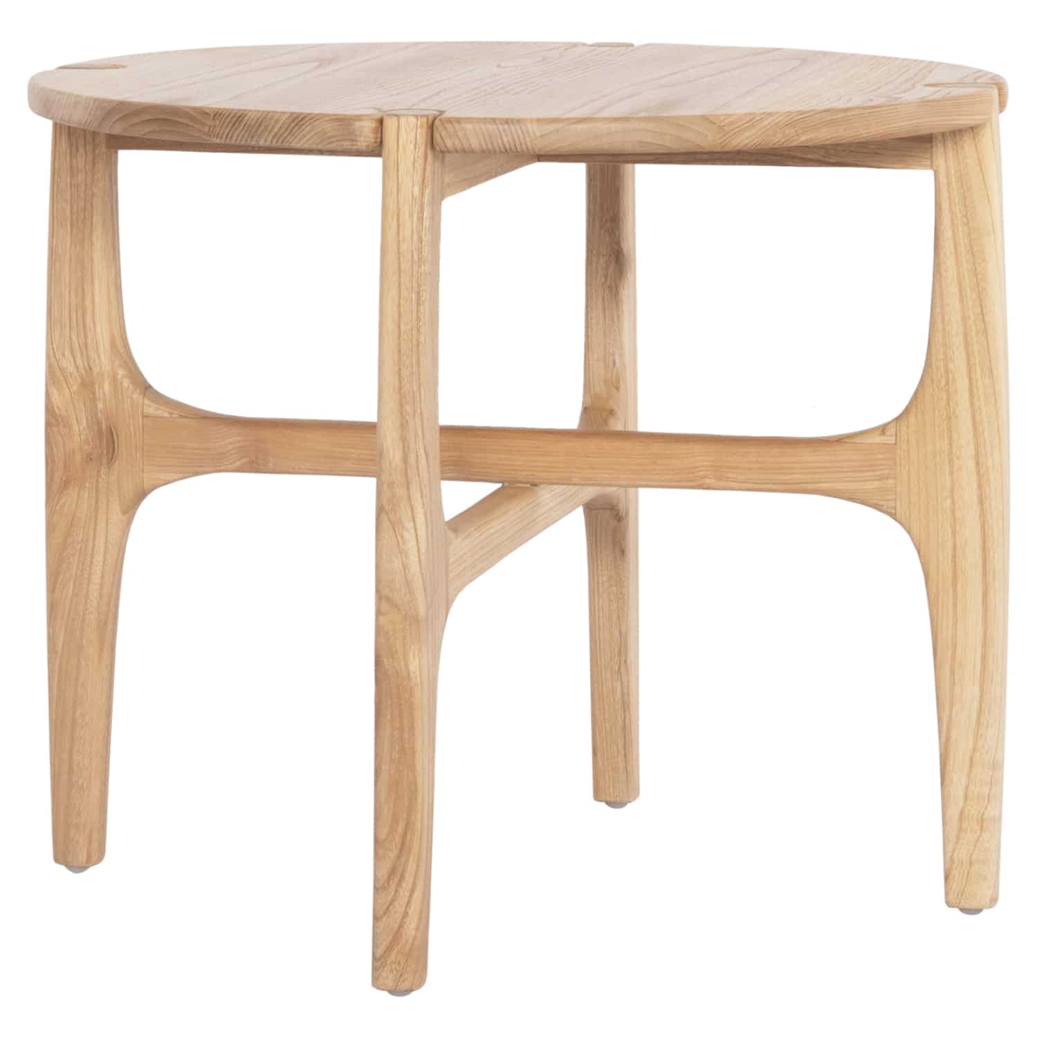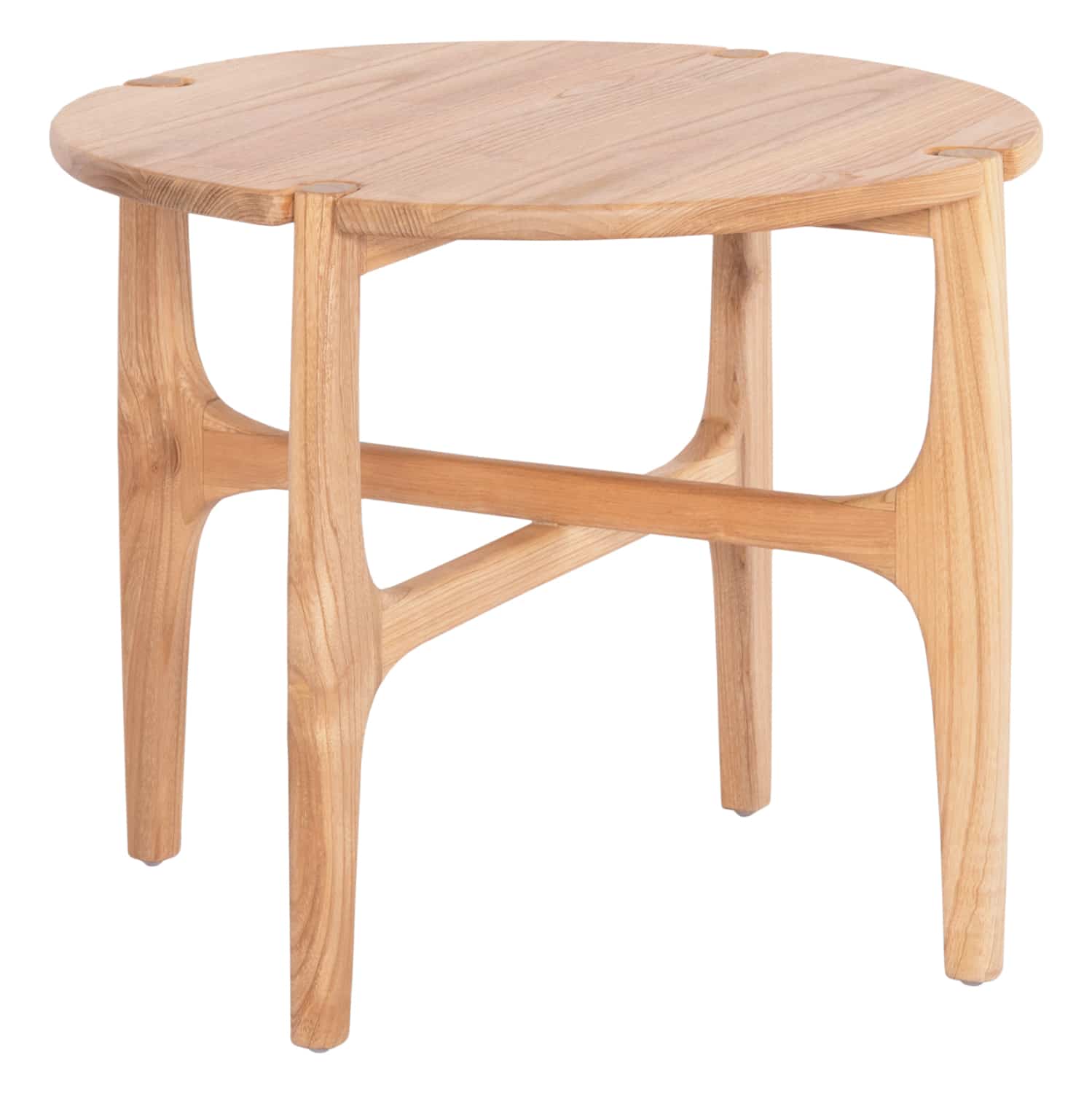 Το βοηθητικό τραπεζάκι KATAL είναι ένα στρογγυλό ξύλινο βοηθητικό τραπεζάκι σε φυσικό χρώμα ξύλου, με τέσσερα πόδια σε χιαστί διάταξη.