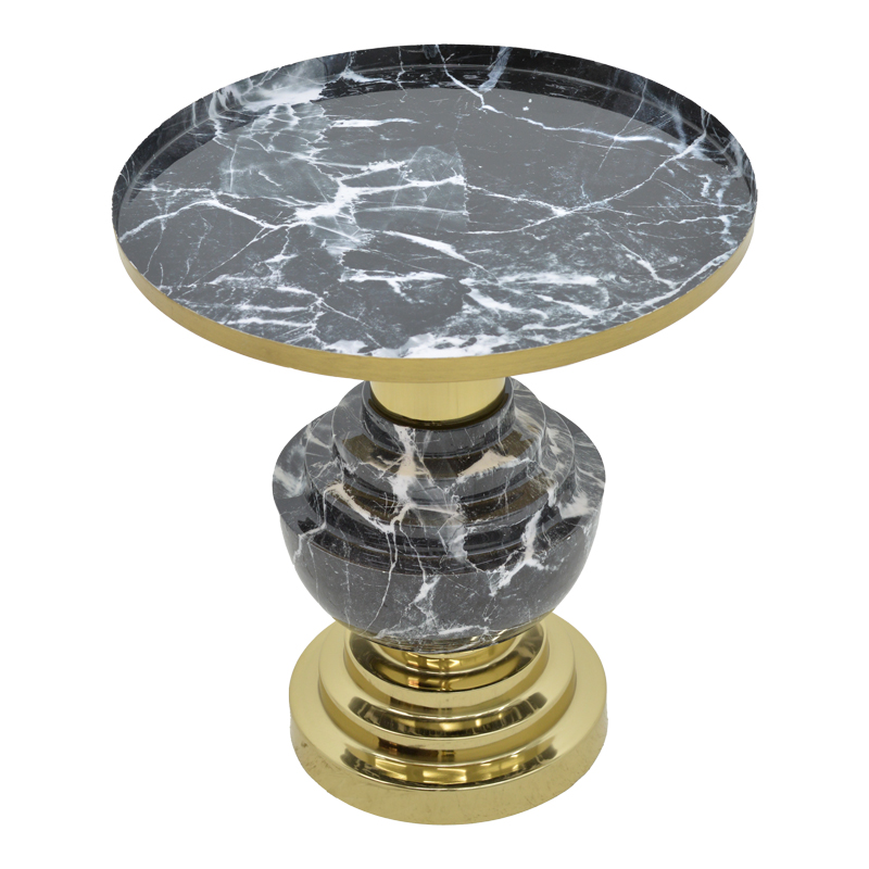 Βοηθητικό τραπέζι Cogent Inart μαύρο-χρυσό μέταλλο Φ46×50εκ