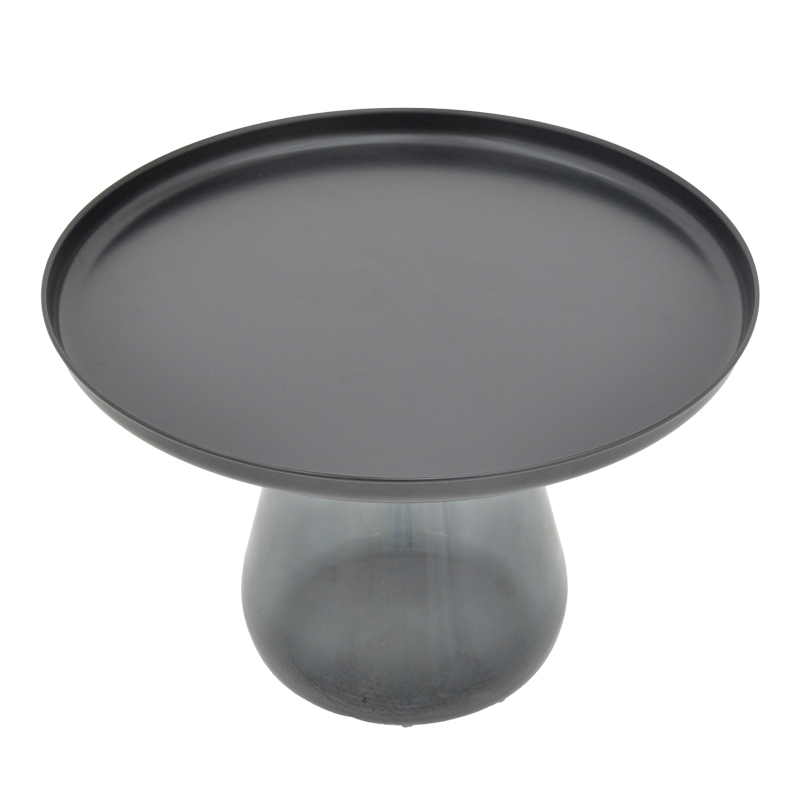 Βοηθητικό τραπέζι Kunlo Inart μαύρο μέταλλο-μαύρο γυαλί Φ60×42εκ