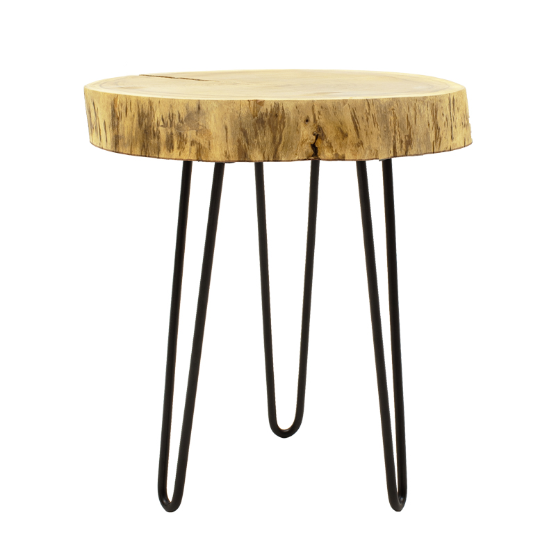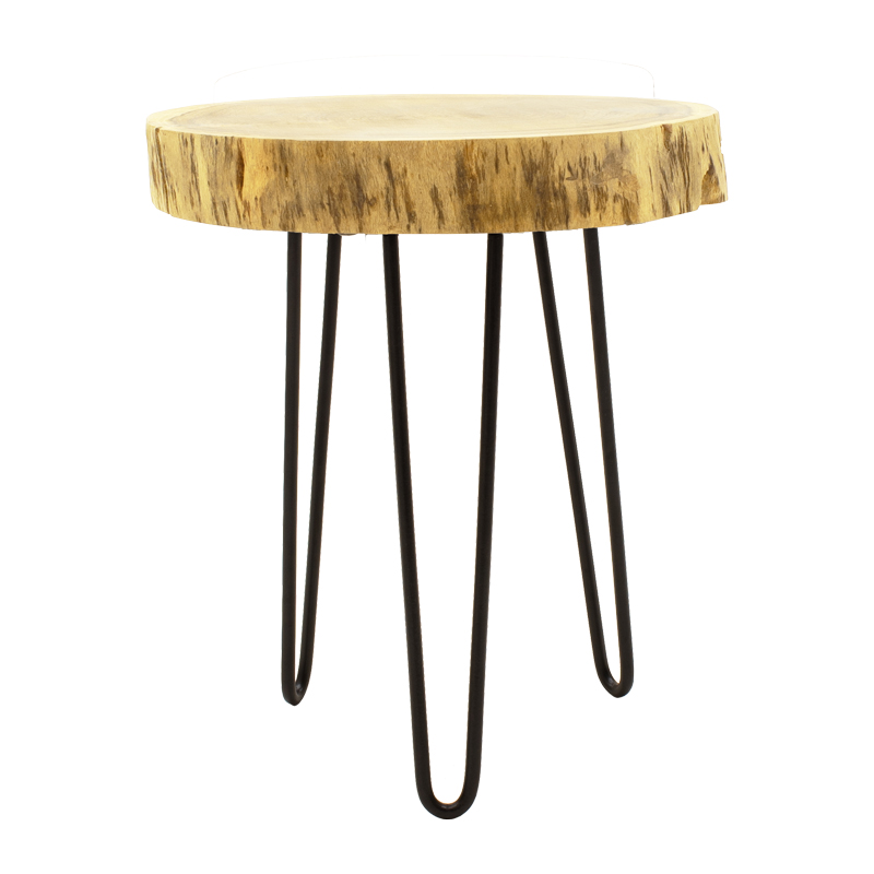 Βοηθητικό τραπέζι Tripp Ι μασίφ ξύλο ακακίας σε φυσική απόχρωση-μαύρα μεταλλικά πόδια Φ41×45εκ