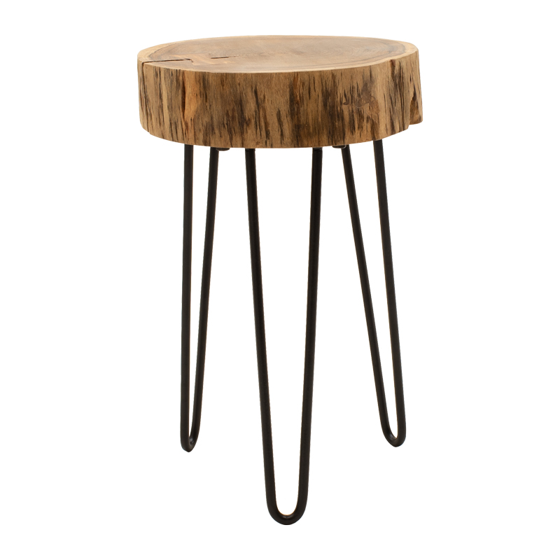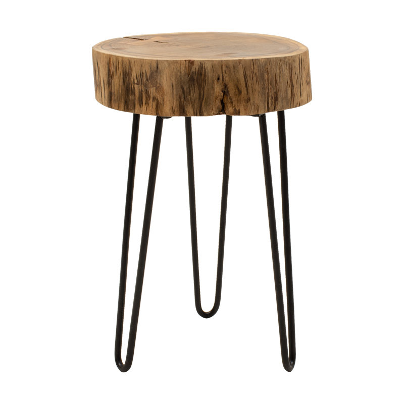 Βοηθητικό τραπέζι Tripp μασίφ ξύλο ακακίας σε φυσική απόχρωση με μαυρα μεταλλικά πόδια 32x30x47εκ