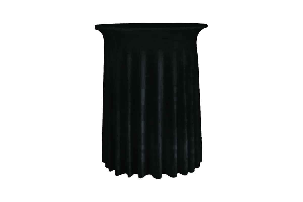 Κάλυμμα τραπεζιού από ύφασμα stretch, ιδανικό για τραπέζια σε εκδηλώσεις, catering, δεξιώσεις και επαγγελματικές παρουσιάσεις. Προσφέρει κομψή εμφάνιση και άψογη εφαρμογή χωρίς τσακίσεις. Κατασκευασμένο από ελαστικό, ανθεκτικό ύφασμα που εφαρμόζει τέλεια σε τραπέζι bar Ø80 / 110h. Πλένεται εύκολα και στεγνώνει γρήγορα.