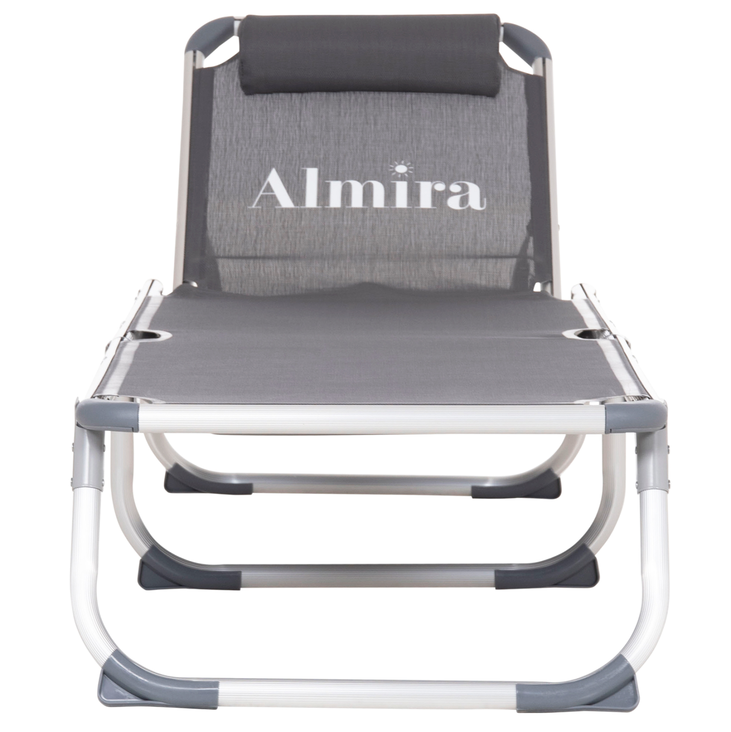 Η πτυσσόμενη ξαπλώστρα παραλίας βαρέως τύπου ALMIRA είναι η κλασσική και διαχρονική αξία για την παραλία. Έχει αποδείξει την χρησιμότητα αλλά και την λειτουργικότητά της εδώ και πάρα πολλά χρόνια. Είναι κατασκευασμένη από αλουμίνιο και textilene σε ΓΚΡΙ χρώμα. Η σκαλιέρα έχει 5 επίπεδα (+1 flat).
