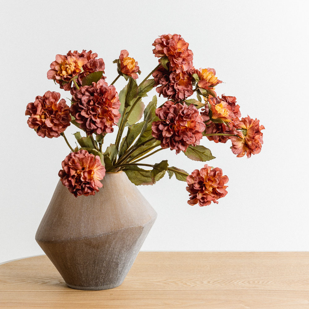 Το μπορντό τεχνητό λουλούδι ZINNIA 52cm εντυπωσιάζει με τον πλούσιο και βαθύ χρωματισμό του, προσθέτοντας μια αίσθηση πολυτέλειας και δραματικότητας σε κάθε διακόσμηση. Η υψηλής ποιότητας κατασκευή του από πολυεστέρα χαρίζει ρεαλιστική υφή και αντοχή. Ιδανικό για vintage, dark-chic ή και πιο formal συνθέσεις, δημιουργεί μια εκλεπτυσμένη και ατμοσφαιρική αίσθηση. Ιδανική επιλογή για χώρους που θέλουν να ξεχωρίσουν με στυλ και ένταση.