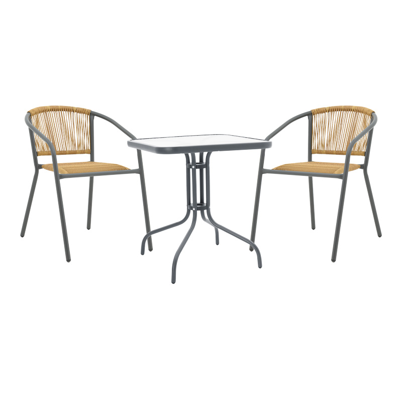 Τραπέζι Acapulco μαύρο μέταλλο – pe rattan σε φυσική απόχρωση Φ50×50εκ