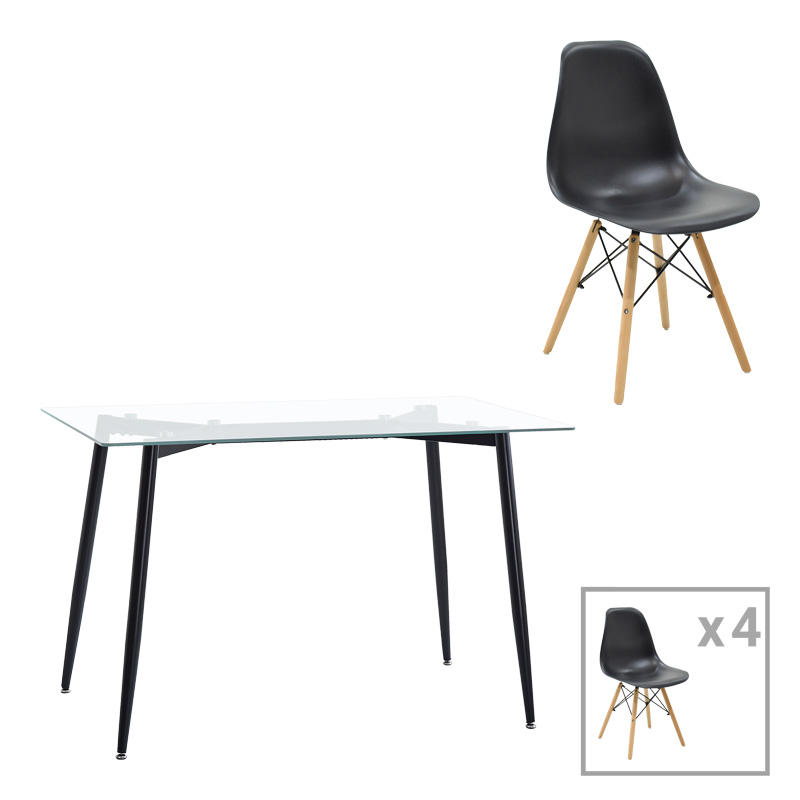 Τραπεζαρία σετ 7τεμ. Ganny-Mady teak ξύλο σε φυσική-μαυρη απόχρωση 200x100x75εκ