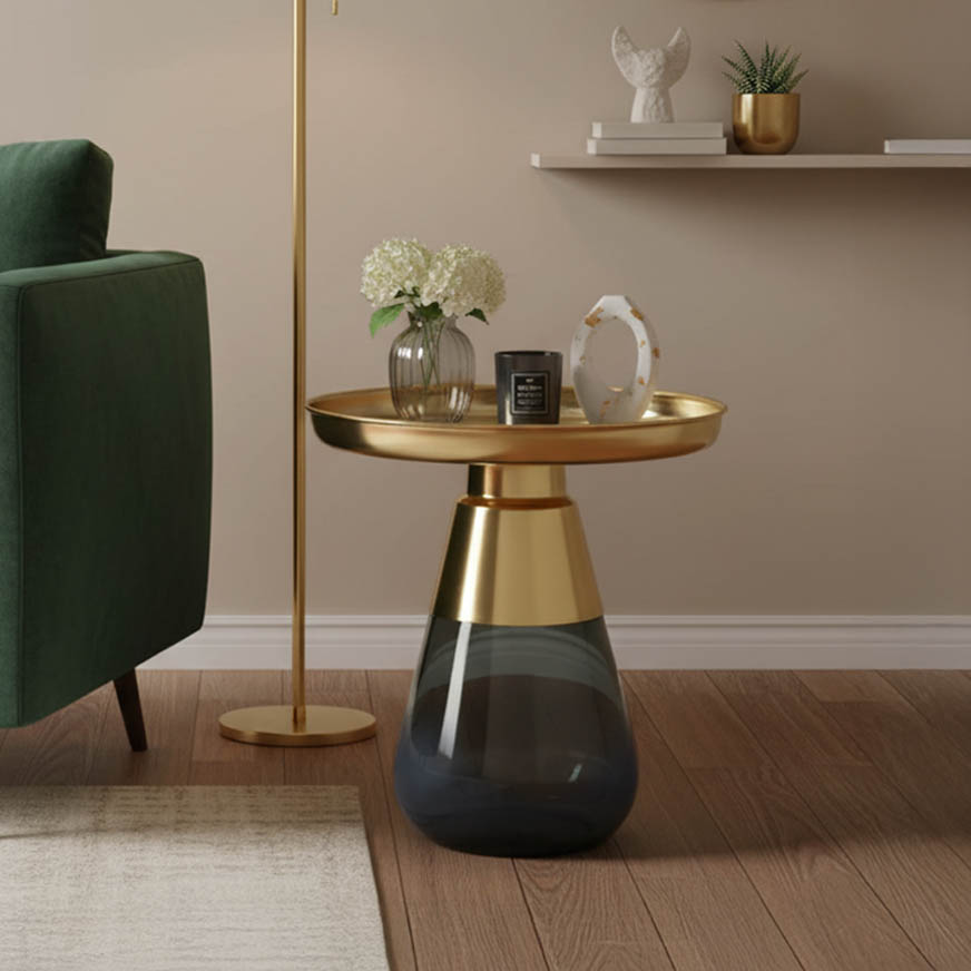 Βοηθητικό τραπέζι Kunlo Inart χρυσό χρώμιο-μαύρο γυαλί Φ50×53.5εκ