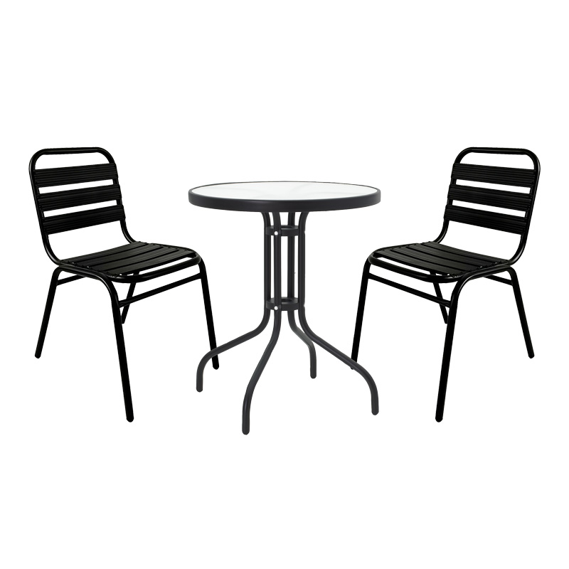 Τραπεζαρία Naoki σετ 3 τεμ μέταλλο μαύρο-pe φυσικό-γυαλί 80x80x78εκ