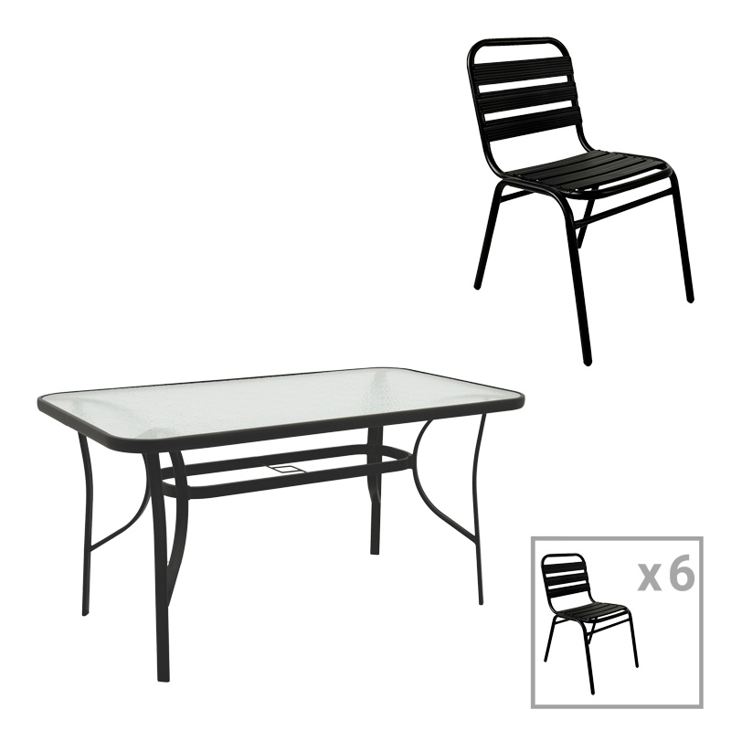 Τραπεζαρία Sussie-Ensure 7τεμ μέταλλο-γυαλί σε μαύρη απόχρωση 140x80x70εκ