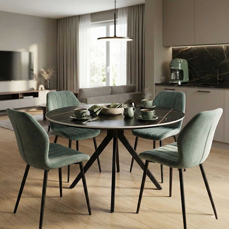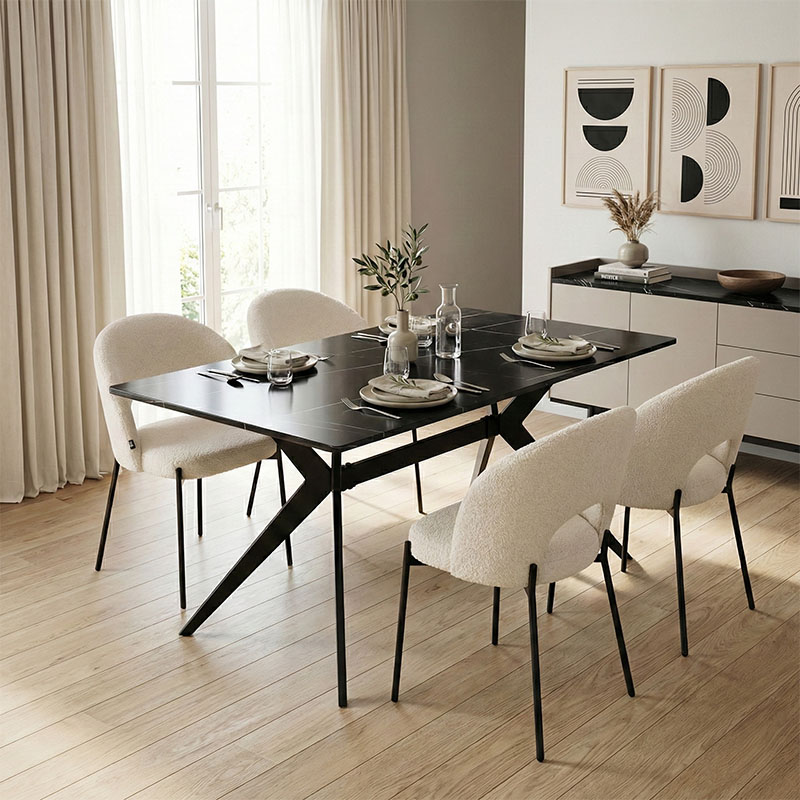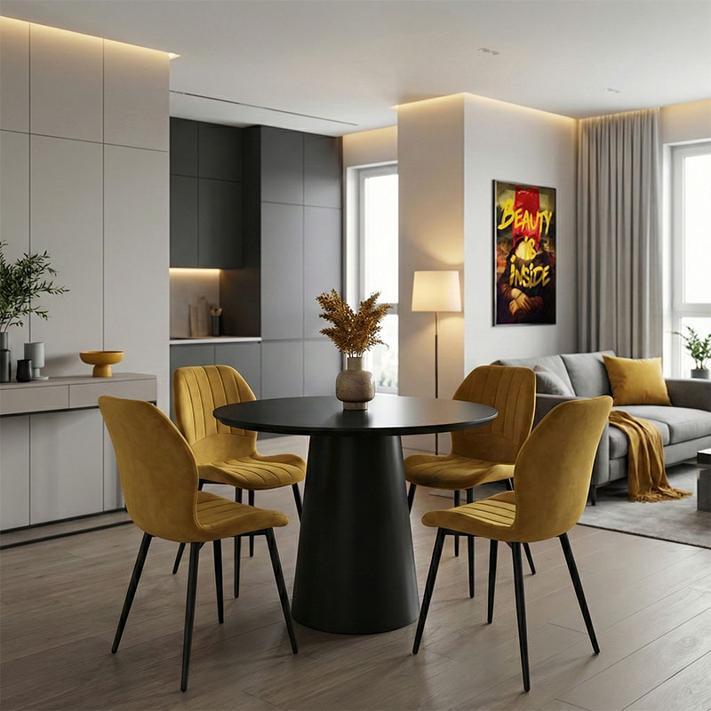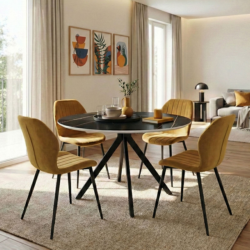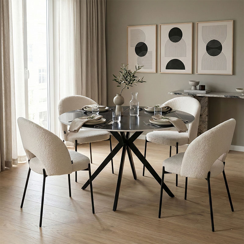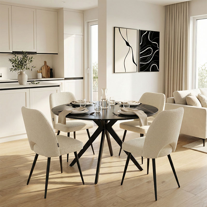 Τραπεζαρία Julita-Noor σετ 3τεμ MDF μαύρο-μπεζ-φυσικό Φ60×73εκ