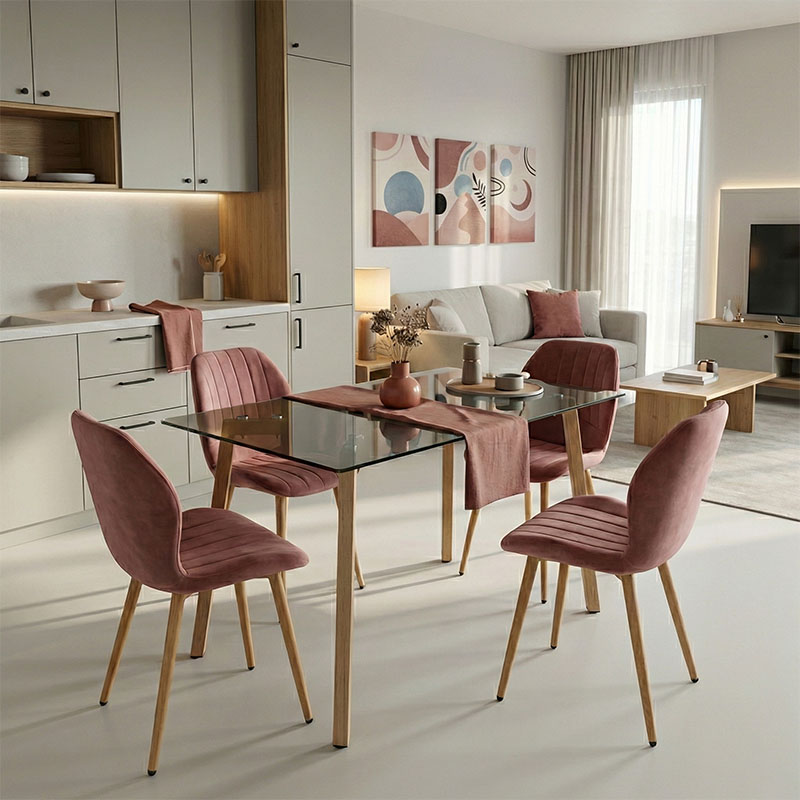 Τραπεζαρία Natali-Noor σετ 3τεμ MDF λευκό-μπεζ-πόδια φυσικό 80x80x76εκ